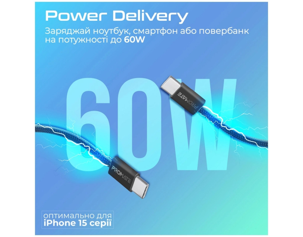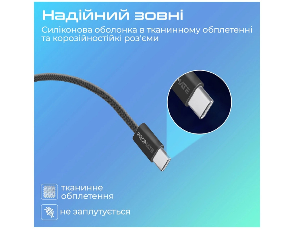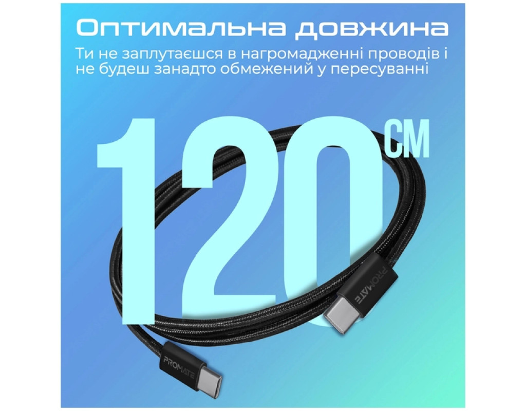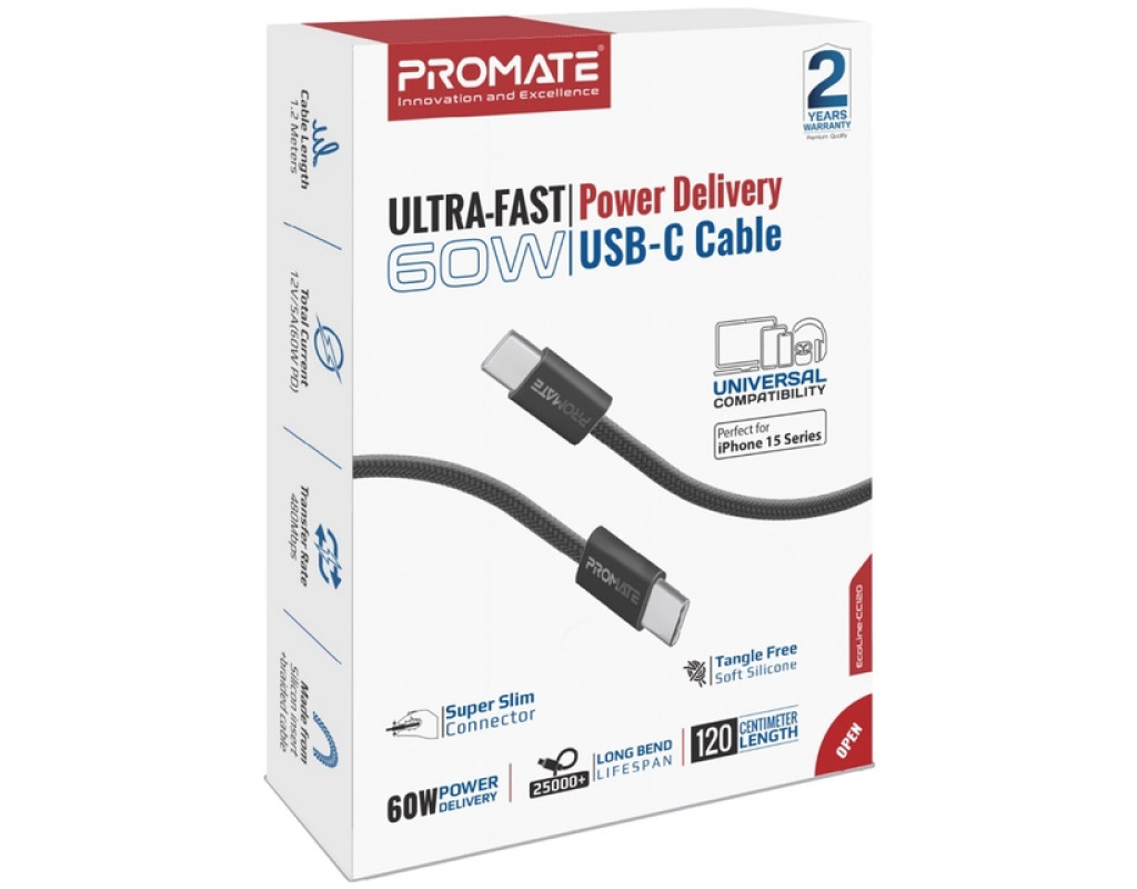 Дата кабель USB-C to USB-C 1.2m Promate (ecoline-cc120.black)