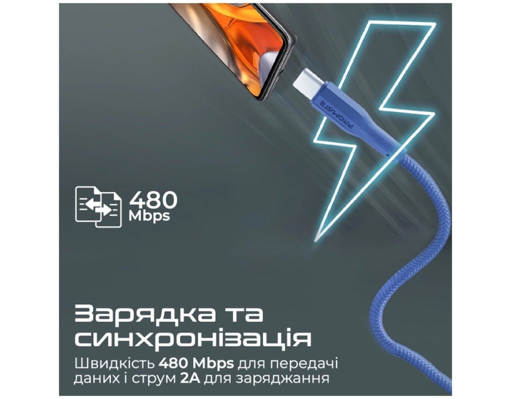 Дата кабель USB 2.0 AM to USB-C 1.2m Promate (xcord-ac.navy)