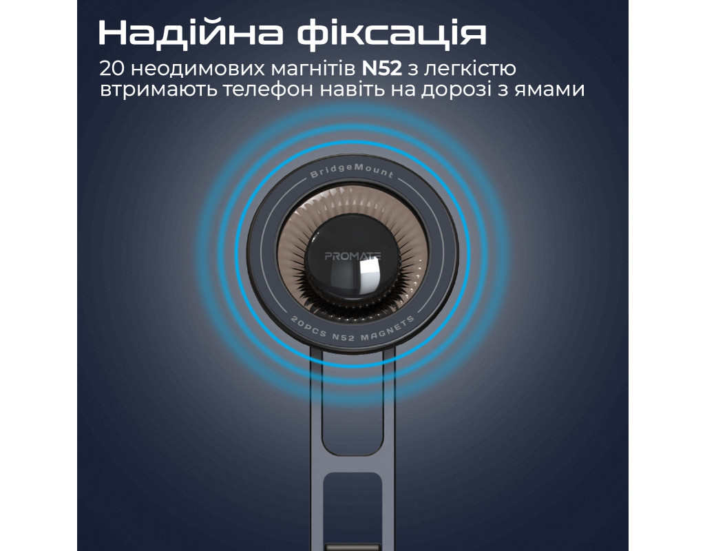 | Bridgemount – надежный и удобный автодержатель от Promate. Благодаря уникальному дизайну подойдет к любому салону автомобиля.