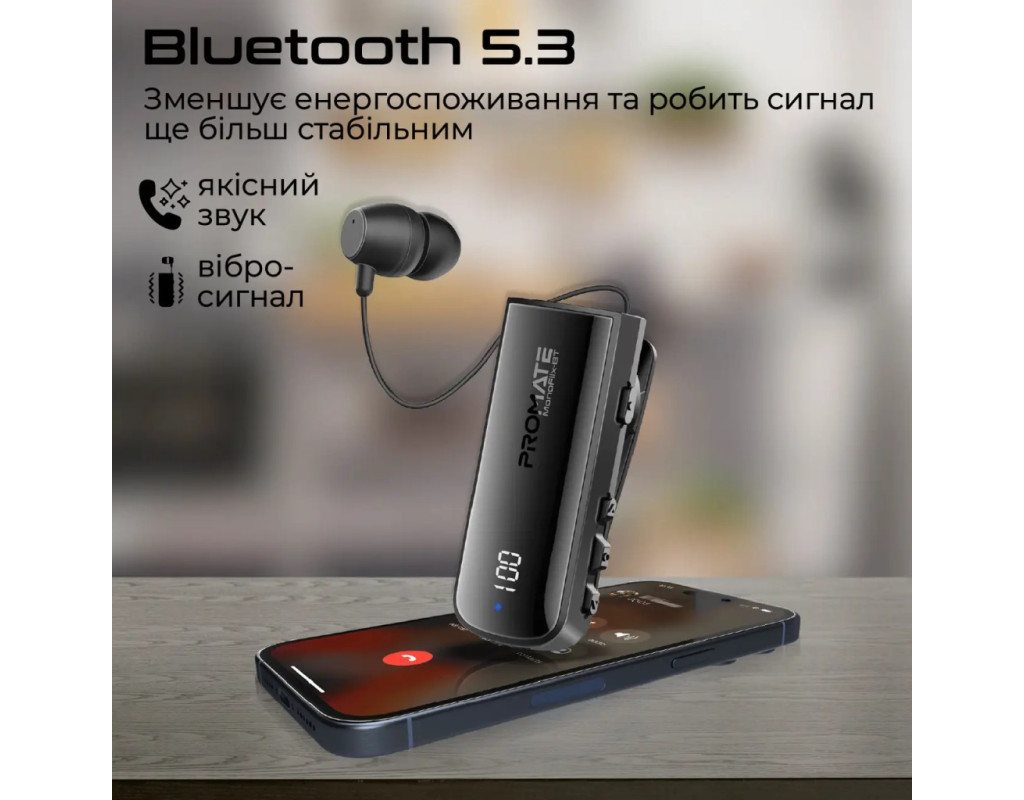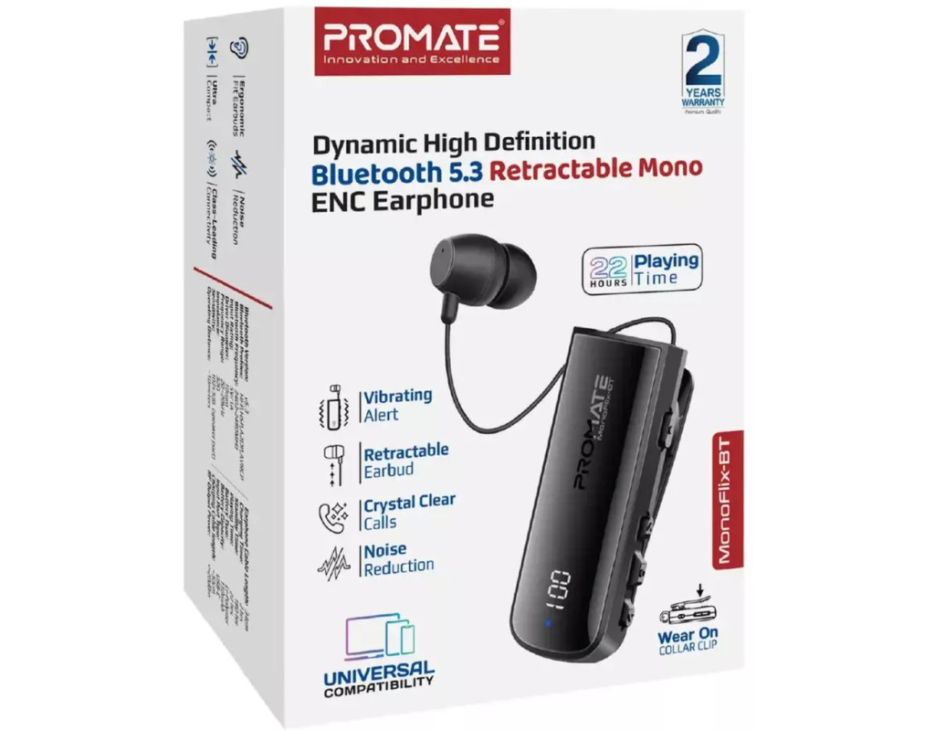 | Наушники Promate Monoflix-bt Black (monoflix-bt.black) — это незаменимый аксессуар для любителей качественного звука и беспроводного комфорта. Эти TWS гарнитуры идеальны для любых устройств, будь то телефон или ноутбук, обеспечивая гибкость и удобство благодаря Bluetooth подключению версии 5.3. Легкие (всего 21 г) и комфортные, они станут вашими постоянными спутниками, куда бы вы ни отправились. Конструкция наушников вакуумная или внутриканальная, что позволяет им надежно держаться в ушах даже во время активных движений. Для удобства крепления используется ушной фиксатор, который уменьшает усталость при длительном прослушивании. Все эти детали делают Monoflix-bt отличным выбором для длительного использования и гарантируют, что наушники останутся на месте. Встроенный микрофон с технологией ENC обеспечивает высокое качество передачи голоса, эффективно подавляя фоновые шумы. HD звук, поддерживаемый современным чипом Bluetooth и качественным динамическим излучателем, перенесёт вас на новый уровень аудио опыта, независимо от того, слушаете ли вы музыку или общаетесь с друзьями. Благодаря Li-Pol батарее на 150 mAh, вы сможете наслаждаться звуком до 22 часов без подзарядки. Наушники также поддерживают до 180 часов в режиме ожидания, что делает их идеальными для длительных путешествий или рабочих дней. Зарядка через порт USB-C занимает всего 2 часа, а встроенный LCD экран позволяет легко следить за уровнем заряда. Преимуществом является их эргономичный дизайн, предлагающий комфортное ношение в течение долгого времени. Корпус наушников оснащён прищепкой для удобного ношения на одежде, а кабель вытягивается на нужную длину, позволяя одним нажатием кнопки спрятать его внутрь. Наушники имеют защиту IPX7, что гарантирует водо- и пылеустойчивость, делая их идеальными для использования в любых условиях. Принимайте звонки и изменяйте громкость легко с помощью кнопок на корпусе благодаря простому управлению. Monoflix-BT впечатляет своей широкой совместимостью, поддерживая соединение с устройствами, оборудованными любой версией Bluetooth. В комплекте также идёт кабель USB-A/USB-C для зарядки, сменные амбушюры (2 шт), и руководство пользователя, что делает эти наушники идеальным решением для любых аудиопотребностей. Выберите Promate Monoflix-bt Black и откройте для себя новый уровень беспроводного комфорта и качества звука. |