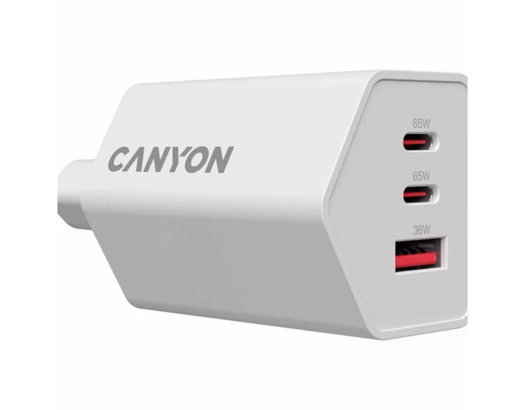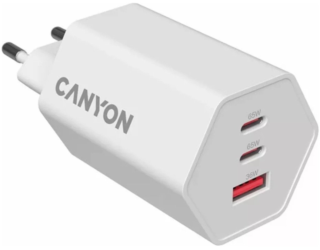 Зарядное устройство Canyon HEXAGON 65 GaN 65W 2xPD 1xQC EU White (CND-CHAHEX65W)