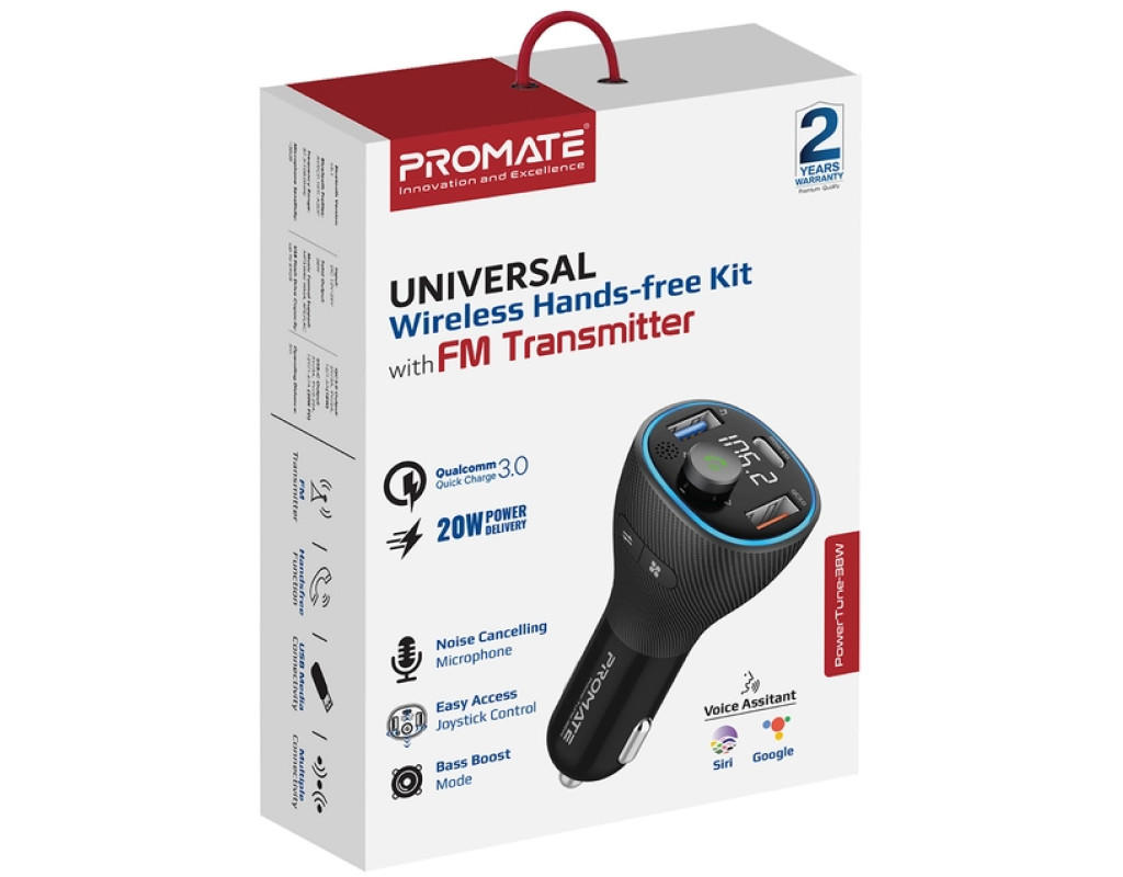 Кришталево чисте звучання, підтримка технологій Power Delivery та Quick Charge 3.0, підсилювач басів і LED дисплей. PowerTune-38W - флагманський трансмітер 2022 року від Promate, який не тільки неперевершено відтворює музику, а й потужно заряджає. Особливості: