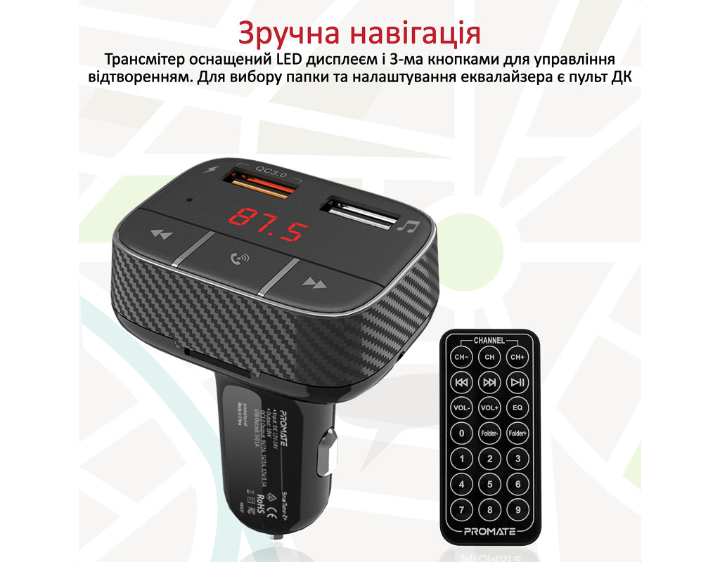 | Новый FM-трансмиттер от компании Promate SmarTune-2+, объединил в себе лучшие качества своих предшественников. Последняя версия Bluetooth 5, быстрая зарядка Quick Charge 3.0 и невысокая стоимость, делают его лучшим выбором в сравнении с технологически устаревшими аналогами.