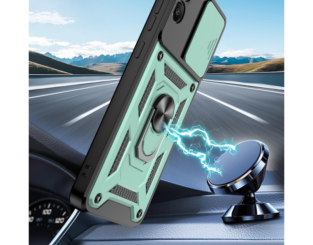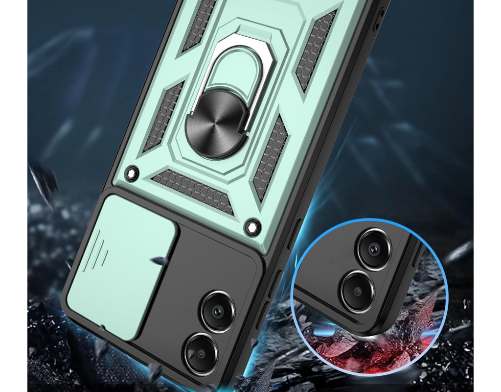 Гибкая силиконовая панель имеет жесткий металлизированный корпус и подставку для пальца. Чехол способен выдержать даже сильные ушибы и царапины. Встроенный регулируемый кронштейн для кольца: вращающееся на 360° кольцо снимается или выдвигается как подставка, чтобы освободить руки. Это позволит вам использовать кольцо в качестве подставки для гаджета, используя свой смартфон во время просмотра видео, делая фото или пользуясь Интернетом. Чехол приятный на ощупь, имеет противоскользящее покрытие против пота и отпечатков пальцев. Мягкий тонкий материал не повреждает мобильный телефон, удароустойчив и приподнят, образуя борта, чтобы защитить камеру и экран. Конструкция совместима с магнитным держателем (не включая магнитный автомобильный крепеж): в этом случае может надежно удерживать магнитный автомобильный крепеж и свободно вращаться (не совместимый с беспроводной зарядкой) |