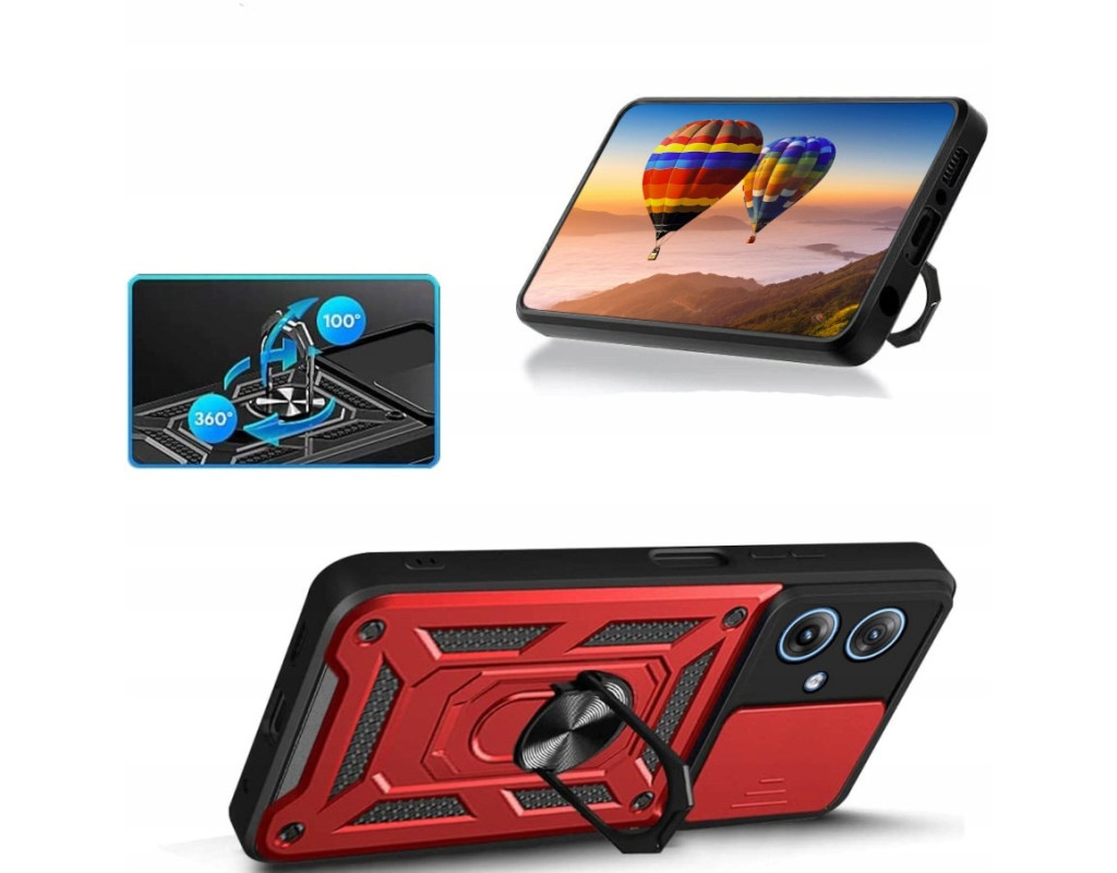 Гибкая силиконовая панель имеет жесткий металлизированный корпус и подставку для пальца. Чехол способен выдержать даже сильные ушибы и царапины. Встроенный регулируемый кронштейн для кольца: вращающееся на 360° кольцо снимается или выдвигается как подставка, чтобы освободить руки. Это позволит вам использовать кольцо в качестве подставки для гаджета, используя свой смартфон во время просмотра видео, делая фото или пользуясь Интернетом. Чехол приятный на ощупь, имеет противоскользящее покрытие против пота и отпечатков пальцев. Мягкий тонкий материал не повреждает мобильный телефон, удароустойчив и приподнят, образуя борта, чтобы защитить камеру и экран. Конструкция совместима с магнитным держателем (не включая магнитный автомобильный крепеж): в этом случае может надежно удерживать магнитный автомобильный крепеж и свободно вращаться (не совместимый с беспроводной зарядкой) |