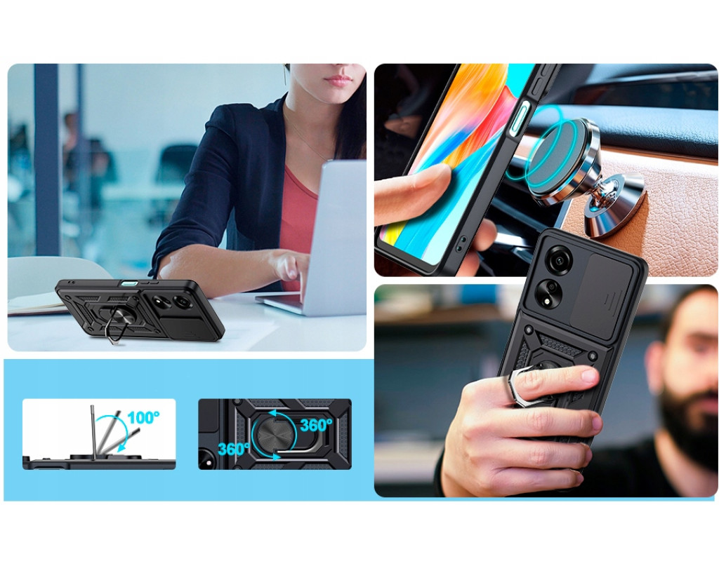 Гибкая силиконовая панель имеет жесткий металлизированный корпус и подставку для пальца. Чехол способен выдержать даже сильные ушибы и царапины. Встроенный регулируемый кронштейн для кольца: вращающееся на 360° кольцо снимается или выдвигается как подставка, чтобы освободить руки. Это позволит вам использовать кольцо в качестве подставки для гаджета, используя свой смартфон во время просмотра видео, делая фото или пользуясь Интернетом. Чехол приятный на ощупь, имеет противоскользящее покрытие против пота и отпечатков пальцев. Мягкий тонкий материал не повреждает мобильный телефон, удароустойчив и приподнят, образуя борта, чтобы защитить камеру и экран. Конструкция совместима с магнитным держателем (не включая магнитный автомобильный крепеж): в этом случае может надежно удерживать магнитный автомобильный крепеж и свободно вращаться (не совместимый с беспроводной зарядкой). |