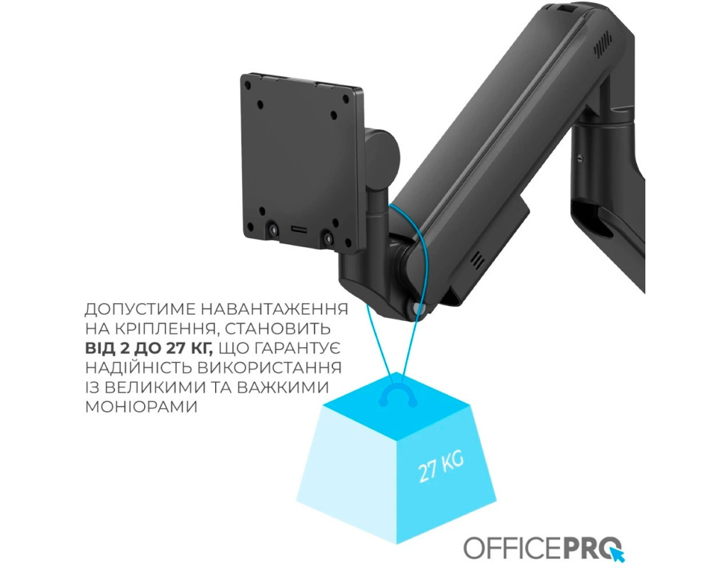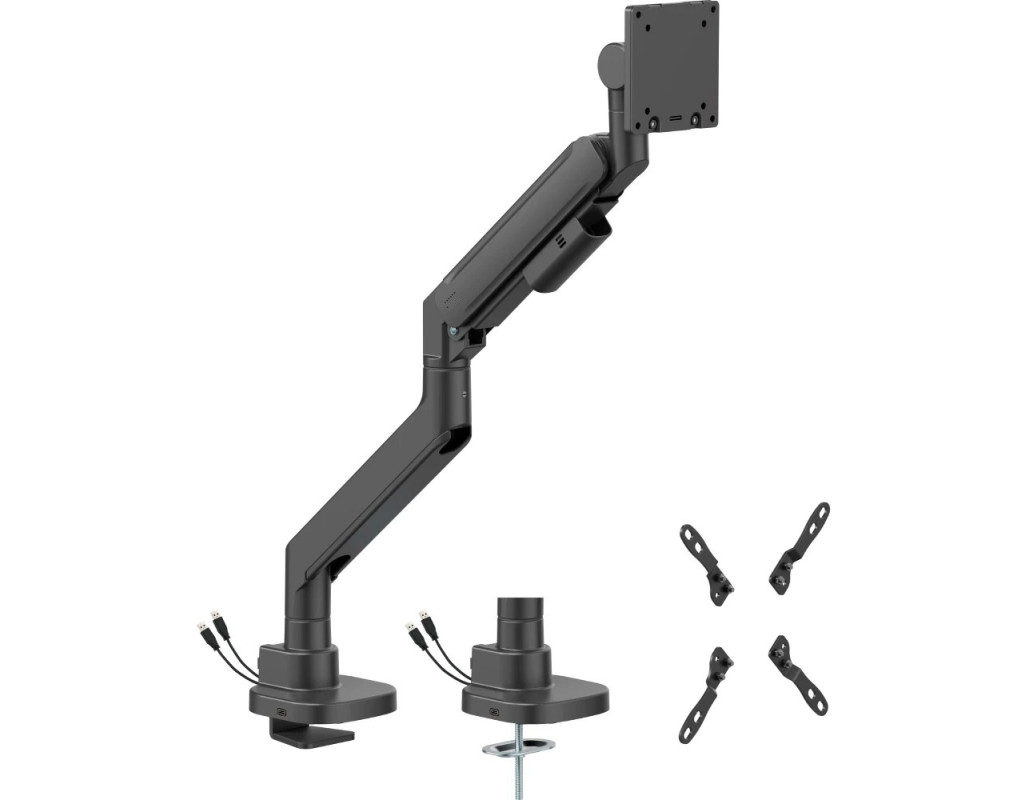 Обеспечивает простое эргономичное позиционирование для снижения нагрузки Встроенная система кабельменеджмента для организованного и аккуратного рабочего пространства Прочный зажим для легкой и надежной фиксации на столе Съемная пластина VESA облегчает установку |