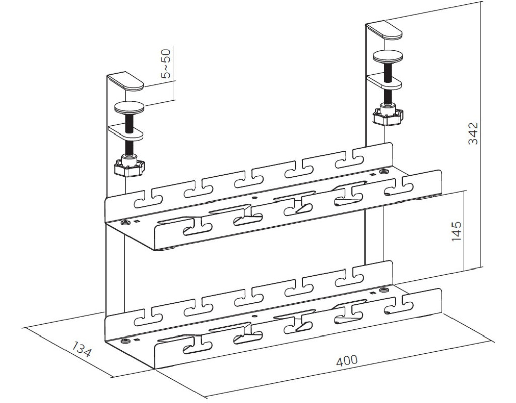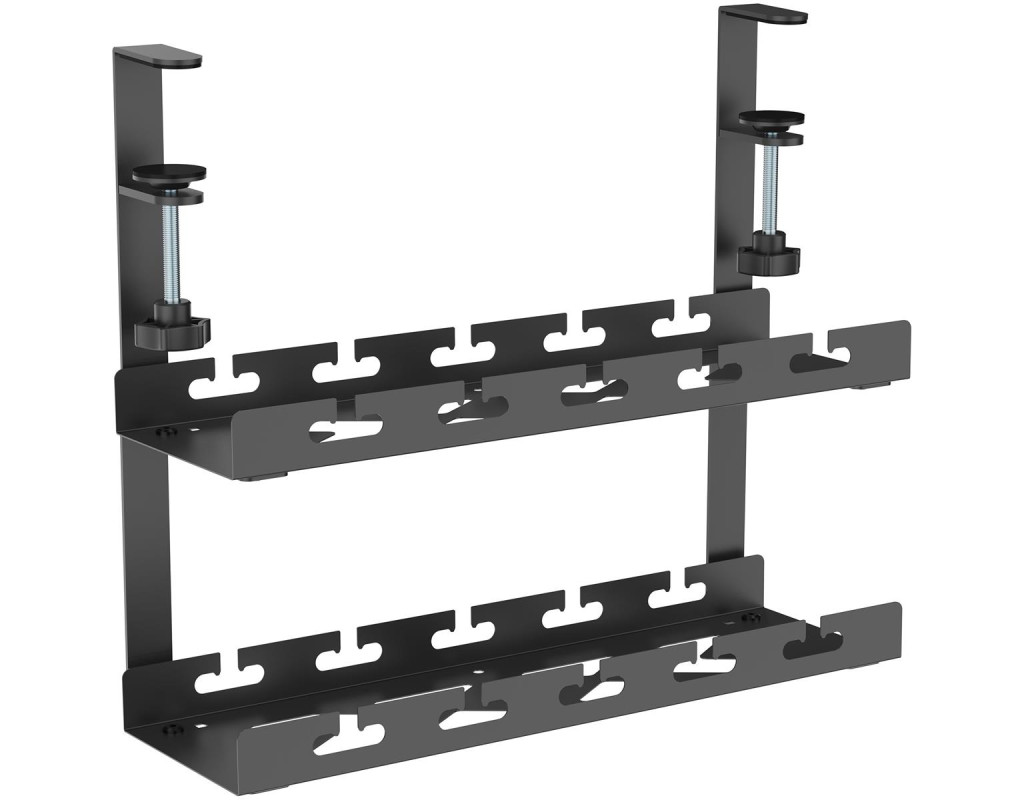 Две полки обеспечивают больше места для хранения и подходят для различных размеров столов и потребностей в хранении. Легко устанавливается с помощью крепких зажимов и может вмещать кабели, хабы, удлинители и адаптеры питания. |