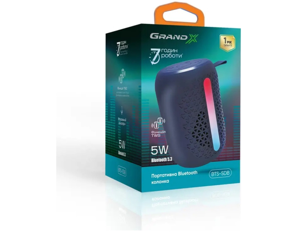 | Акустическая система Grand-X Bluetooth Dark blue (BTS-5DB) – это идеальное сочетание современного дизайна, мощного звука и многофункциональности для настоящих меломанов. Этот портативный гаджет заставит вас погрузиться в мир качественной музыки и насыщенных басов, где бы вы ни находились. Компактный и стильный дизайн является одним из ключевых преимуществ Grand-X BTS-5DB. Всего 0,28 кг веса и идеальные размеры 87 х 87 х 120 мм делают эту колонку неотъемлемой частью любого путешествия или вечеринки. Изящный темно-синий цвет корпуса, изготовленного из надежного ABS пластика, придает устройству элегантность и гарантирует его долговечность. Впечатляющее качество звука с мощностью динамика в 5 Вт дарит насыщенное звучание с выразительными и четкими басами, создающими идеальное музыкальное сопровождение для любого настроения. Амплитудно-частотная характеристика от 100 Гц до 18 КГц раскрывает широту звукового спектра, в то время как импеданс 3 Ом обеспечивает безупречную стабильность работы. Инновационные возможности подключения делают это устройство максимально удобным. Благодаря интерфейсам USB-C и Bluetooth версии 5.3 с поддержкой HFP, HSP, A2DP, AVRCP и кодеком SBC, подключение к различным девайсам никогда не было таким простым. Дальность работы до 10 метров позволяет перемещаться свободно, без ограничений. Мощный аккумулятор с ёмкостью 2500 мА/ч обеспечивает до 7 часов непрерывной работы при 70% громкости или до 5 часов на максимуме, а зарядка длится всего 5 часов с использованием входа 5 В 0.5 А. Таким образом, наслаждаться любимой музыкой можно часами без перерывов. Удобные дополнительные функции, такие как встроенный микрофон, гарантируют исключительное качество во время звонков. Благодаря функции TWS (True Wireless Stereo), можно объединять две колонки для создания реального стереоэффекта, который удваивает ваше музыкальное наслаждение. Кроме того, яркие световые эффекты украсят настроение любого мероприятия, от вечеринки до спокойного вечера дома. Grand-X Bluetooth Dark blue (BTS-5DB) – это ваш незаменимый спутник в путешествиях или повседневной жизни, предоставляющий драйв и яркие моменты. Выберите надежность, стиль и качество с Grand-X – это ваш звук, ваш стиль, ваше музыкальное сопровождение всегда с вами. |