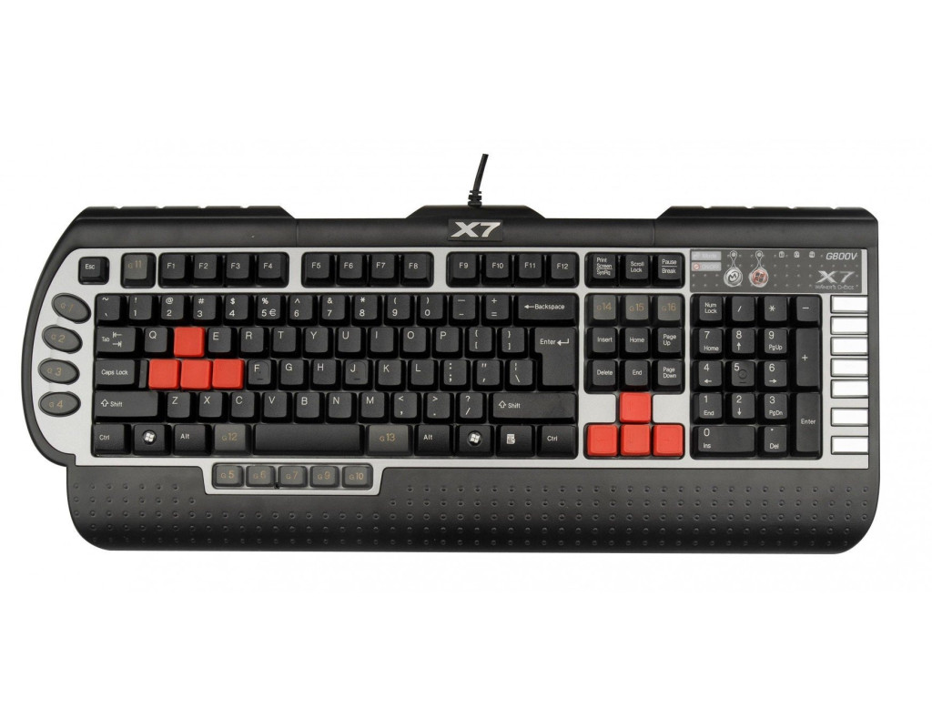 | Игровая клавиатура A4Tech G-800V продолжает лучшие традиции игровых клавиатур X7. Как и ее предшественники, модель обладает уникальными игровыми свойствами. Она имеет четыре скоростных режима, сверхбыстрое время отклика и укомплектована сменными игровыми клавишами.