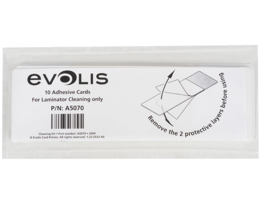 Печать на пластиковых карточках требует обычной очистки принтера, так как карты могут иметь высокую статичность зарядов, притягивая при этом пыль и грязь. Чтобы поддерживать производительность, работу и срок службы Вашего принтера, Evolis поставляет чистящие комплекты для проведения обширной очистки оборудования. Чистящий комплект A5070 (10 клейких карточек) - комплект очистки ламинатора. Информация о хранении: