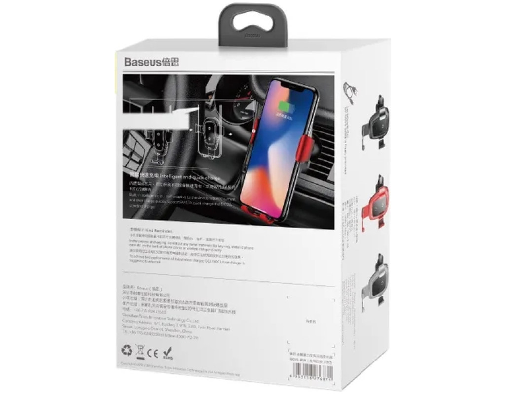 Baseus Metal Wireless Charger Gravity Car Mount представляет собой беспроводное зарядное устройство, которое крепится в дефлектор автомобиля, а также служит в качестве держателя для телефона. Модель надежно фиксирует смартфон с трех сторон благодаря регулируемым креплениям, исключая выпадение гаджета. Baseus Metal Wireless Charger Gravity Car Mount имеет компактные размеры, при этом обладает продуманной конструкцией. Регулируемые крепления позволяют установить любой смартфон и надежно зафиксировать его. Нижний зажим выполнен таким образом, чтобы можно было подключать кабель для зарядки устройств, в которых отсутствует поддержка беспроводной зарядки. Baseus Metal Wireless Charger Gravity Car Mount позволяет одновременно заряжать и использовать смартфон без подключения кабеля зарядки. Крепление держателя подходит для большинства типов решеток дефлектора автомобилей, что делает аксессуар универсальным. Максимальная выходная мощность беспроводной зарядки составляет 10 Вт. Эффективное расстояние между беспроводной зарядкой и смартфоном не должно превышать 8 мм от поверхности зарядного устройства – поэтому, не нужно снимать чехол с смартфона. Для безопасности Ваших гаджетов, в устройство встроено 10 уровней интеллектуальной защиты: от перегрузки по силе тока, перезаряда, перегрева, перегрузки, различных перенапряжений, коротких замыканий, воздействия электромагнитного поля. Чтобы на выходе Baseus Metal Wireless Charger Gravity Car Mount выдавала 10 Вт, необходимо использовать зарядный адаптер с поддержкой Quick Charge. Преимущества