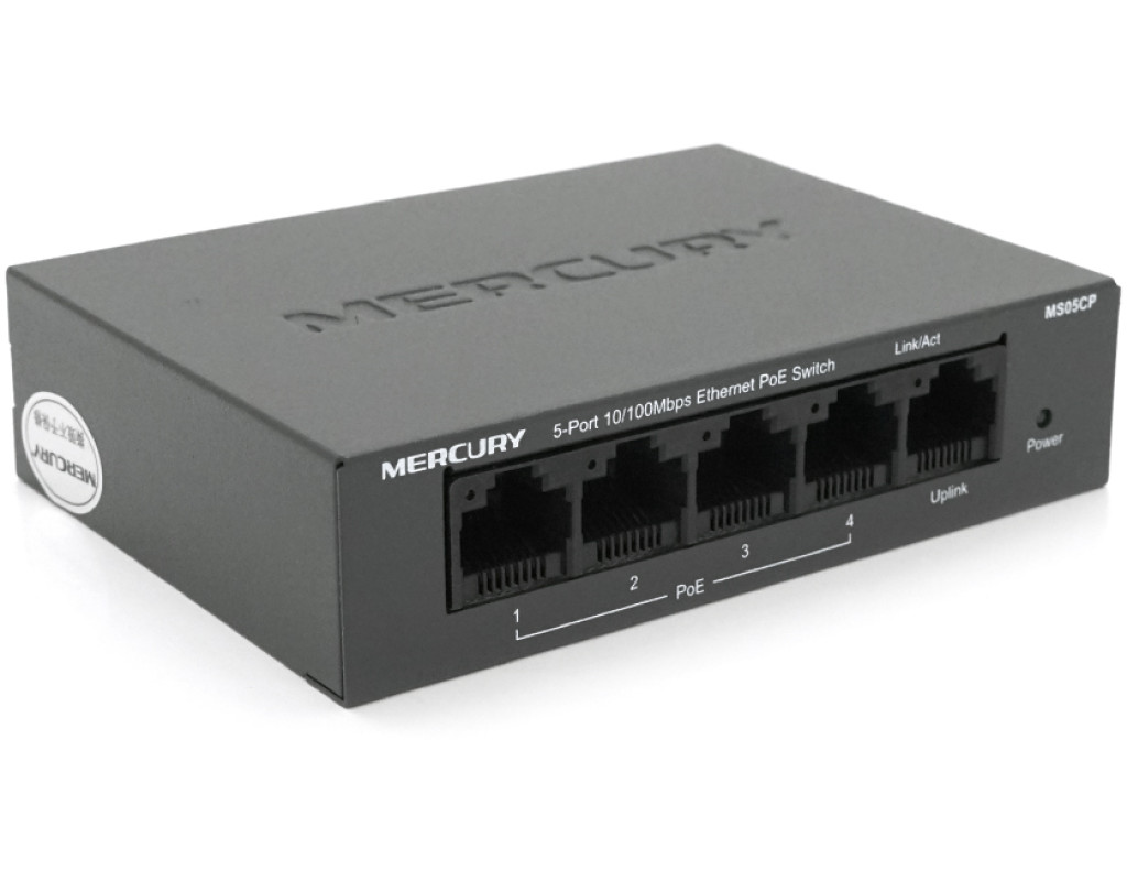 | Комутатор POE 48V Mercury MS05CP 4 порти POE+1 порт Ethernet (Uplink ) 10 / 100 Мбіт / сек, БП в комплекті + перехідник |