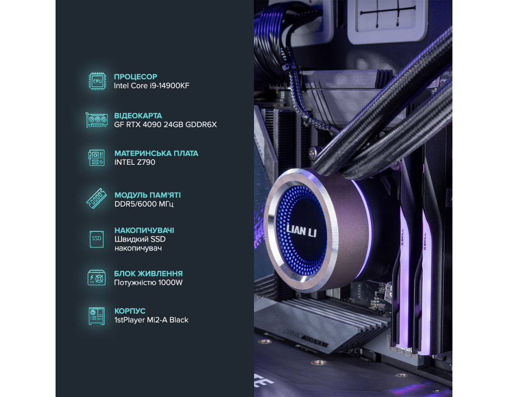 Персональный компьютер ASGARD (I149KF.64.S10.49.5476); Intel Core i9-14900KF (3.2 - 6.0 ГГц) / ОЗУ 64 ГБ / SSD 1 ТБ / NVIDIA GeForce RTX 4090 24 ГБ / без ОП / LAN / Wi-Fi / Bluetooth / Ubuntu / черный