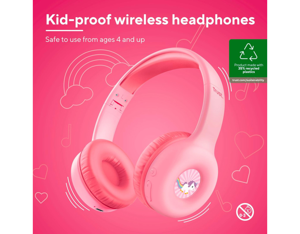 | Наушники Trust Nouna Kids Wireless Pink (25274) — это отличный выбор для юных меломанов, который сочетает в себе высококачественный звук, стильный дизайн и безопасность. Эти детские наушники специально созданы для маленьких ушей, что делает их идеальными для прослушивания музыки, аудиокниг или образовательных программ. Владельцы этих наушников оценят накладную конструкцию с регулируемым оголовьем, которое легко подстраивается под индивидуальные особенности ребёнка, обеспечивая максимально комфортную посадку. Мягкие амбушюры созданы для длительного ношения без дискомфорта, что обеспечивает удобство даже для самых маленьких пользователей. Изготовленные на 35% из переработанного пластика, эти наушники являются не только привлекательным, но и экологически чистым выбором, полностью соответствующим стандартам безопасности EN71. Trust Nouna Kids оснащены функцией активного шумоподавления, что позволяет ребенку погружаться в любимые мелодии без отвлечения на внешние звуки. Они также имеют встроенное ограничение громкости, которое поддерживается на уровне до 85 дБ, чтобы защитить чувствительный слух ребенка. Благодаря встроенному микрофону, который интегрирован непосредственно в корпус, ребенок сможет общаться с друзьями или членами семьи, не снимая наушников. Простое управление благодаря интуитивно понятным кнопкам позволяет легко регулировать громкость, добавляя дополнительное удобство в использовании. Беспроводное Bluetooth подключение версии 5.0 гарантирует стабильную и бесперебойную связь с любым Bluetooth-совместимым устройством на расстоянии до 10 метров. Длительное время работы от аккумулятора, которое достигает 20 часов, позволяет вашим детям наслаждаться музыкой или изучением новых тем в течение всего дня. Идеально подходят для использования с телефонами, ноутбуками и даже телевизорами. Компактные и легкие, весят всего 134 грамма, эти наушники легко складываются, что делает их идеальным спутником в путешествиях, на прогулках или в автомобиле. В комплекте идет кабель с разъемом 3,5 мм и длиной 1 м, что дает возможность подключения в режиме проводного соединения, когда это необходимо. Внешний вид наушников также заслуживает особого внимания. Яркий розовый цвет захватывает и способствует проявлению индивидуальности ребенка. Дополнительные яркие наклейки позволяют каждому комплекту выглядеть уникально, добавляя творчества и веселья в их использование. Зарядка осуществляется через современный USB Type-C интерфейс, что гарантирует быстрое и комфортное восстановление энергии. Благодаря сочетанию стиля, комфорта и передовых технологий, наушники Trust Nouna Kids Wireless Pink (25274) станут надежным партнером для вашего ребенка в её музыкальных приключениях. Этот аксессуар не просто приносит удовольствие от прослушивания музыки — он становится символом радости, безопасности и открывает новые горизонты для познания мира через звук! Легкость в использовании, экологичность и высокий уровень безопасности делают их не просто идеальным подарком, но и незаменимым элементом повседневной жизни каждого ребёнка. |