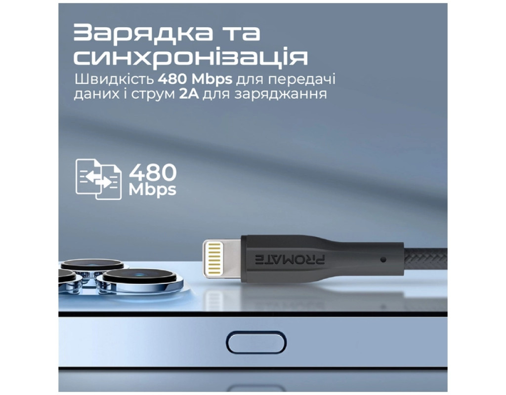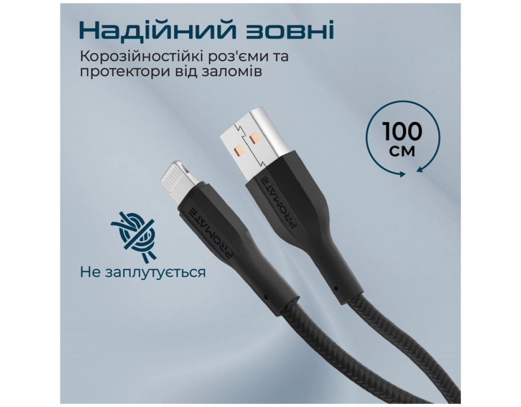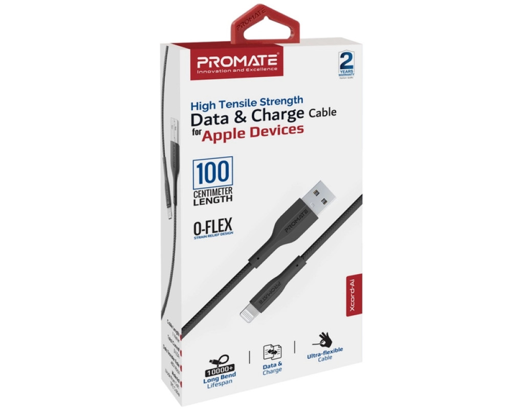 Дата кабель USB 2.0 AM to Lightning 1.0m 2A black Promate (xcord-ai.black)