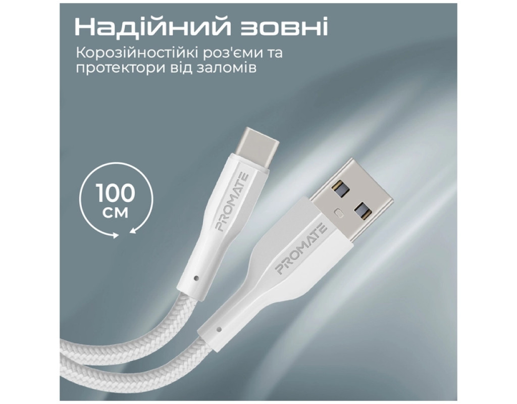 Дата кабель USB 2.0 AM to USB-C 1.2m Promate (xcord-ac.white)