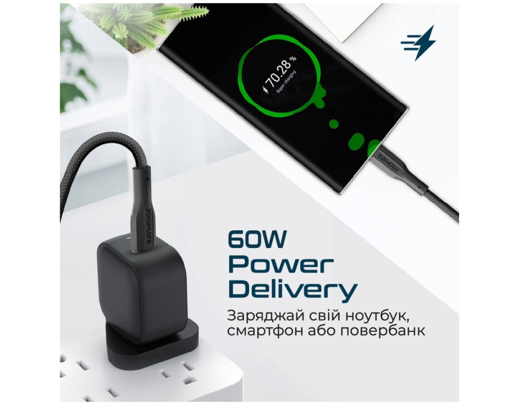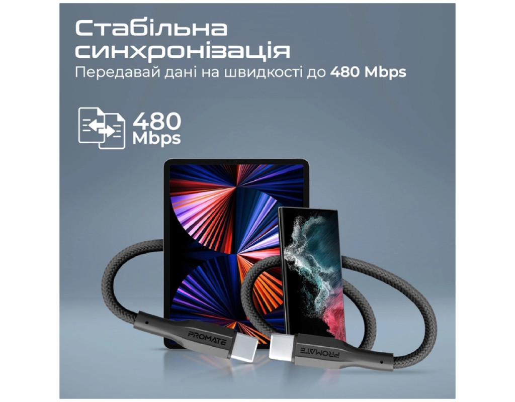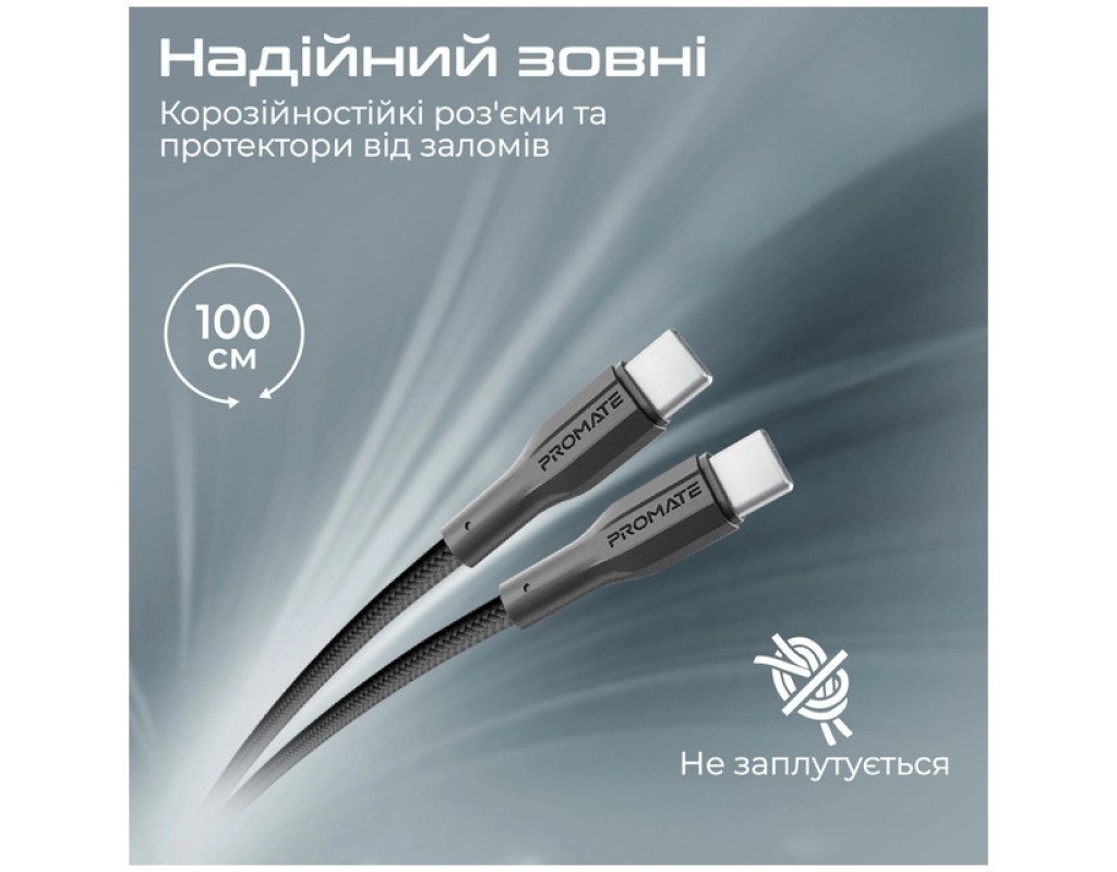 Дата кабель USB-C to USB-C 1.0m Promate (xcord-cc.black)