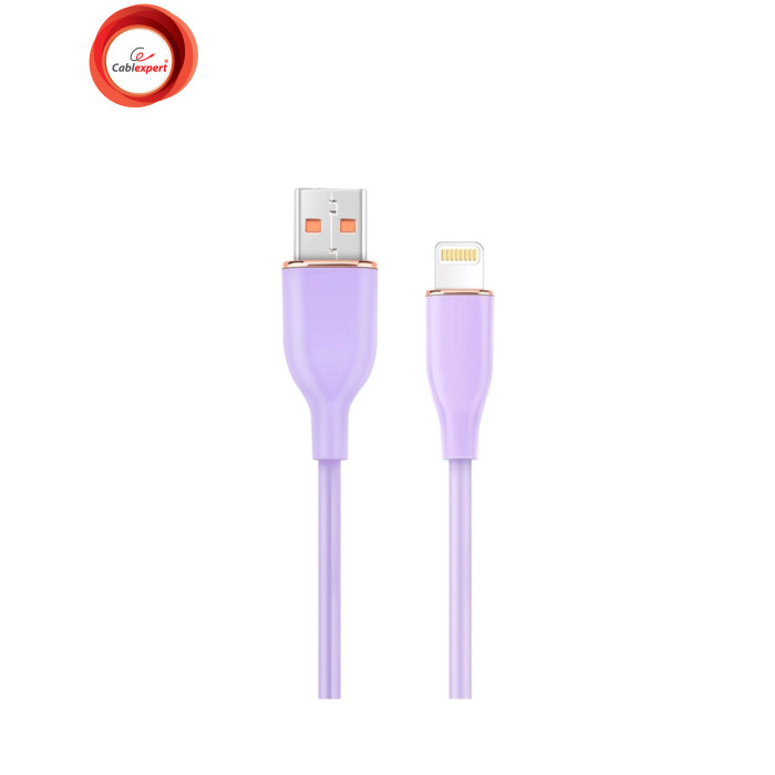 Тип - кабель, Тип коннектора 1 - USB, Тип коннектора 2 - Lightning, длина - 1.5 м, Номинальный ток - 2.1 А, материал: силикон, 480 Мбит/с, Цвет - фиолетовый