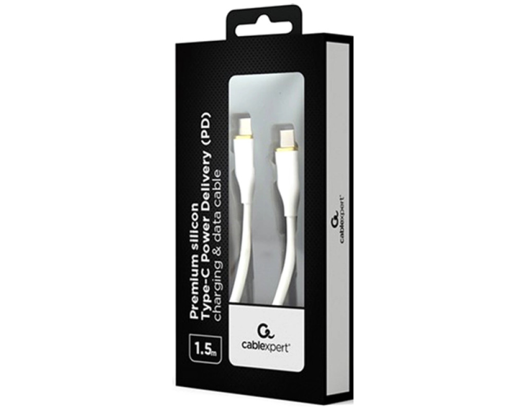 Тип - кабель, Тип коннектора 1 - USB Type-C, Тип коннектора 2 - USB Type-C, длина - 1.5 м, Номинальный ток - 3 А, материал: силикон, 60 W, 480 Мбит/с, Цвет - белый