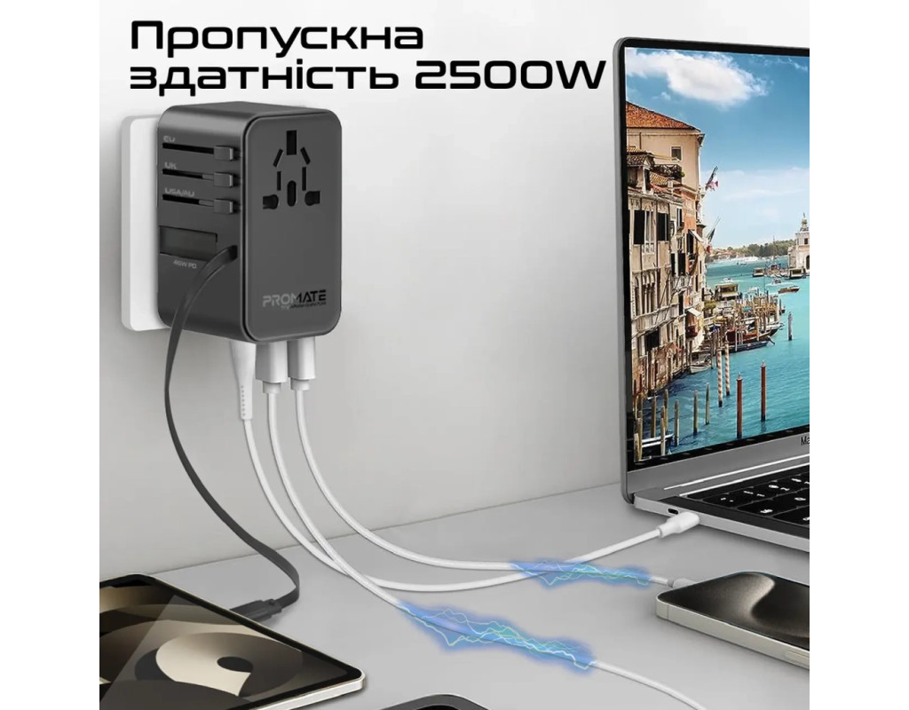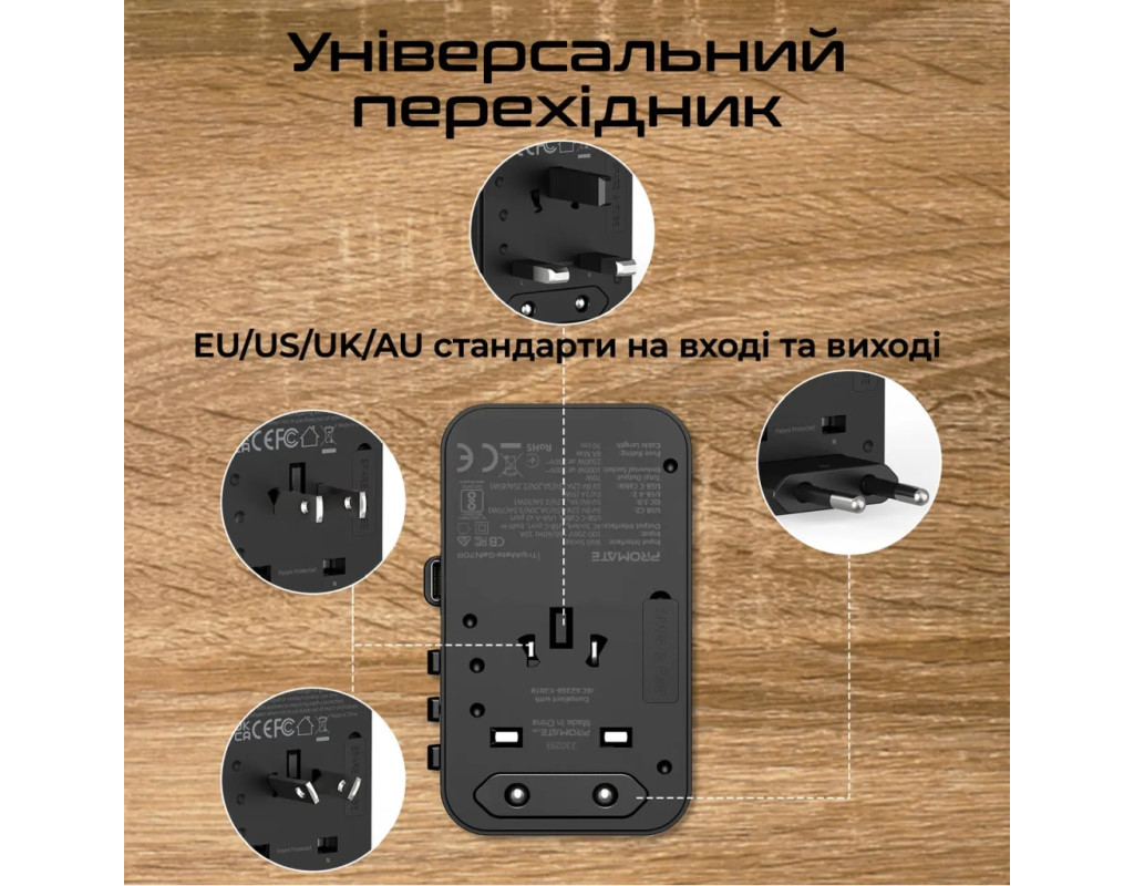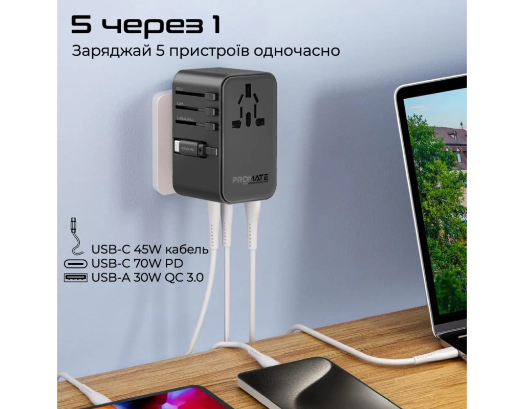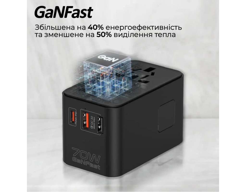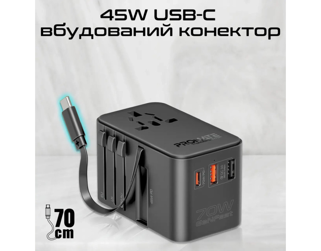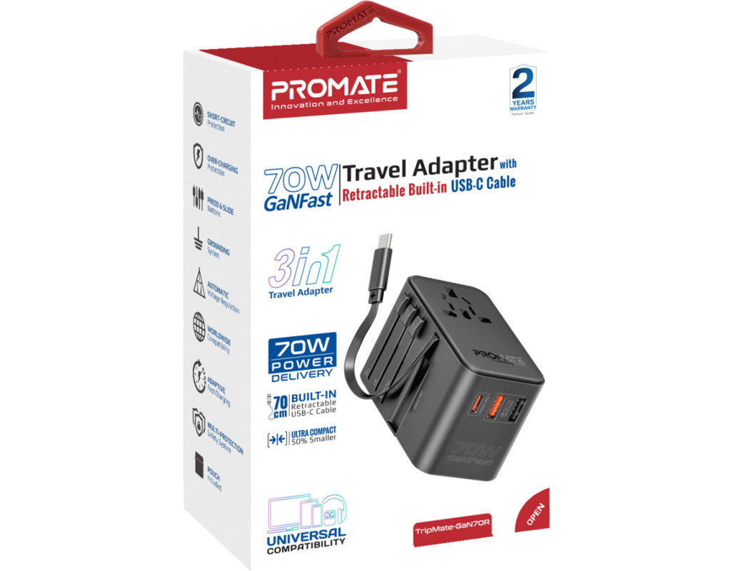 | Зарядное устройство Promate TripMate-GaN70r является настоящим открытием для тех, кто ценит качество и удобство в использовании электроники. Этот универсальный адаптер, работающий от сети, предлагает быстрое и безопасное зарядное устройство благодаря поддержке функции Fast Charging. В комплекте имеется один порт USB Type-C и два стандартных USB-порта, что позволяет одновременно заряжать разнообразные устройства: от ноутбука и планшета до смарт-часов и геймпада. Технология GanFast, применённая в создании этого устройства, делает его энергоэффективным, увеличивая эффективность на 40% по сравнению с аналогами. Снижение тепловыделения на 50% обеспечивает комфортное использование даже во время длительной зарядки. С максимальной мощностью 70 Вт и выходным током до 10 А, это устройство подходит для зарядки даже самых мощных гаджетов. Одним из ключевых преимуществ является универсальный переходник, поддерживающий стандарты EU/US/UK/AU, делая TripMate-GaN70r идеальным спутником для тех, кто путешествует. Встроенный кабель с поддержкой USB-C Power Delivery обеспечивает зарядку до 70 Вт при пяти режимах работы. Это позволяет легко и быстро заряжать любое совместимое устройство. Это зарядное устройство поддерживает подключение до пяти устройств одновременно, благодаря продуманному дизайну не мешая другим подключениям. Компактные размеры (50x87x52 мм) делают его идеальным для переноски в вашей сумке или рюкзаке. Использование чипа Smart IC обеспечивает защиту от перегрева и чрезмерной зарядки. Встроенный предохранитель предотвращает колебания напряжения. Корпус из огнестойкого ABS пластика гарантирует долговечность, что делает Promate TripMate-GaN70r надёжным партнёром для вашей техники. |