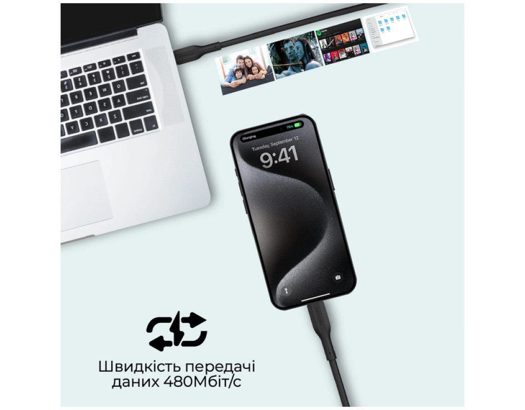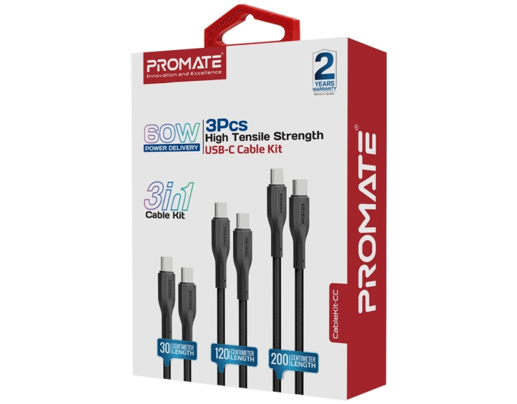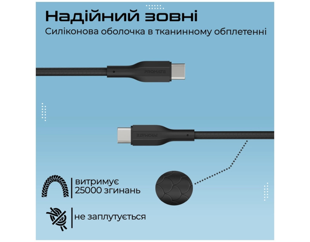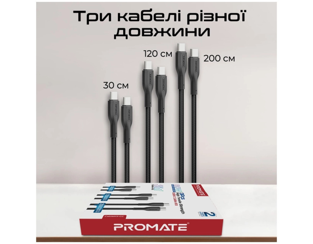 Дата кабель USB-C to USB-C 2.0m Promate (cablekit-cc.black)