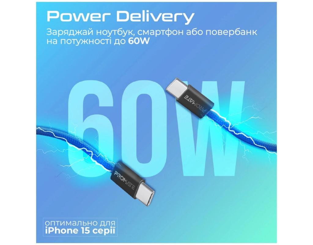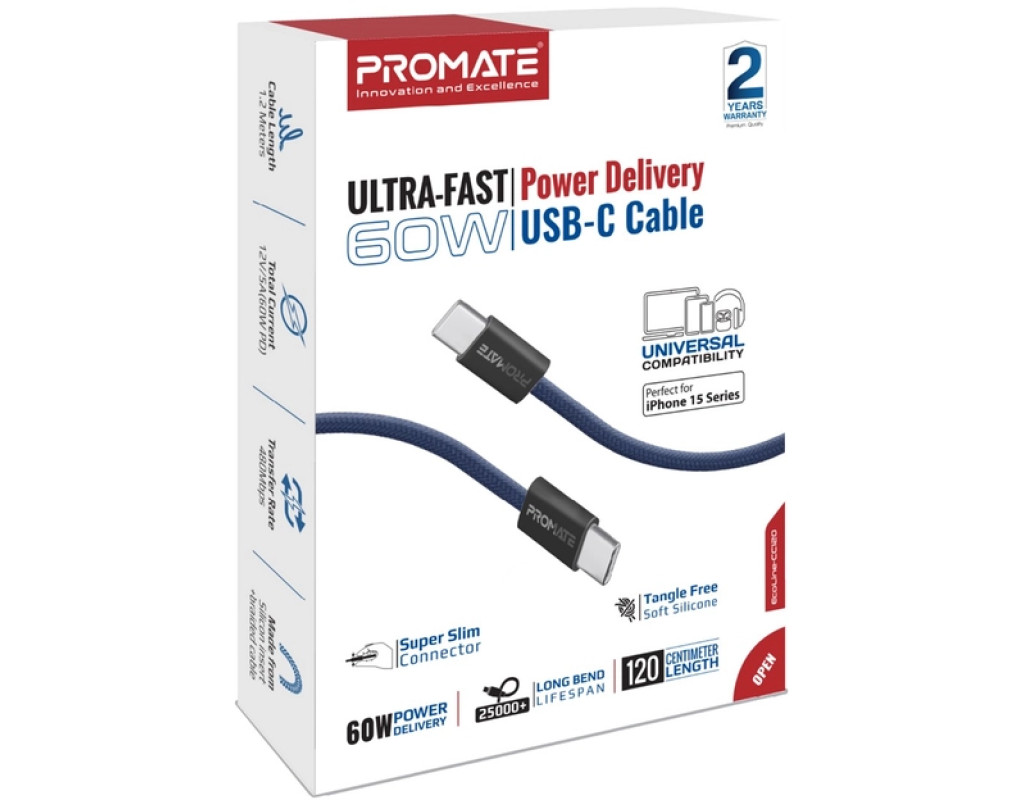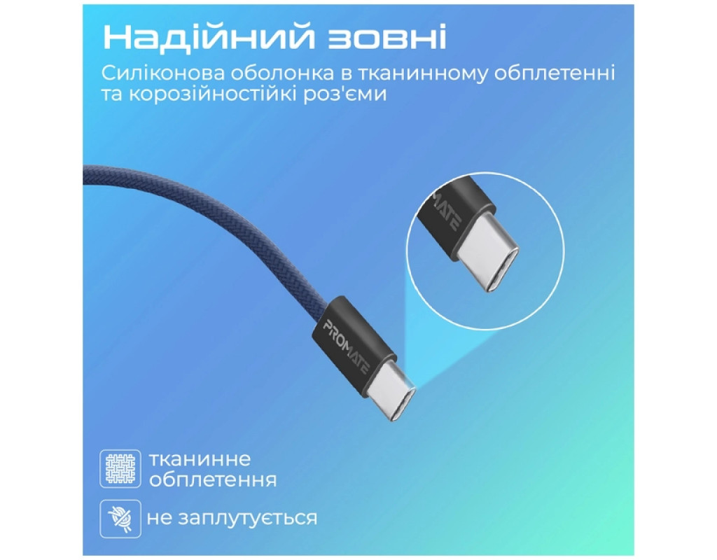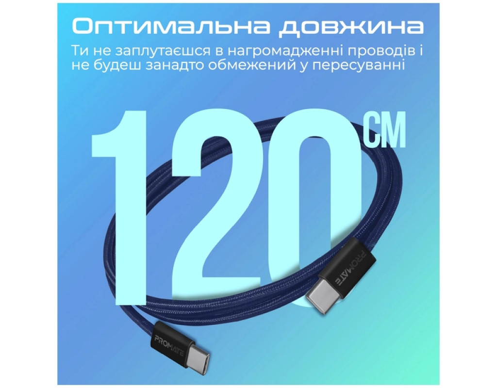 Дата кабель USB-C to USB-C 1.2m Promate (ecoline-cc120.navy)
