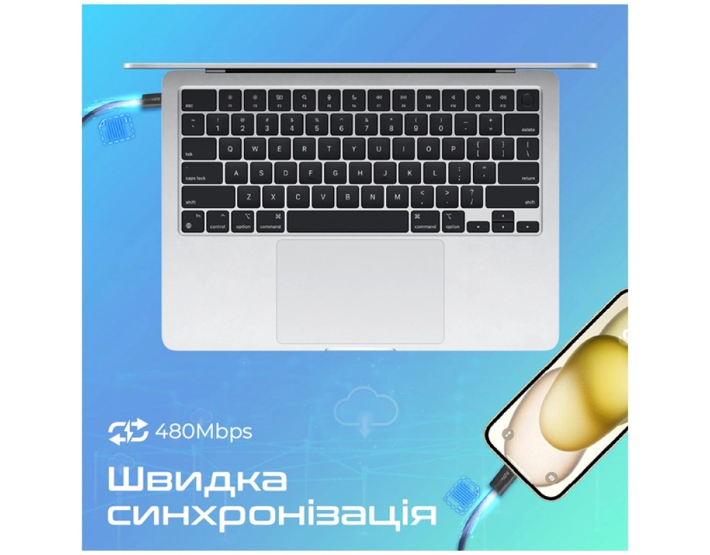 Тип - кабель, Тип коннектора 1 - USB Type-C, Тип коннектора 2 - USB Type-C, длина - 1.2 м, Номинальный ток - 3 А, 60 W, 480 Мбит/с, Цвет - синий