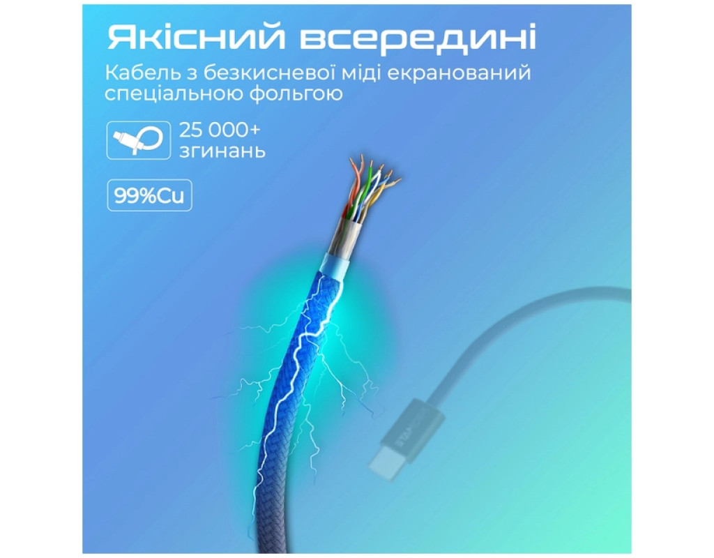 Тип - кабель, Тип коннектора 1 - USB Type-C, Тип коннектора 2 - USB Type-C, длина - 2 м, Номинальный ток - 3 А, 60 W, Цвет - синий