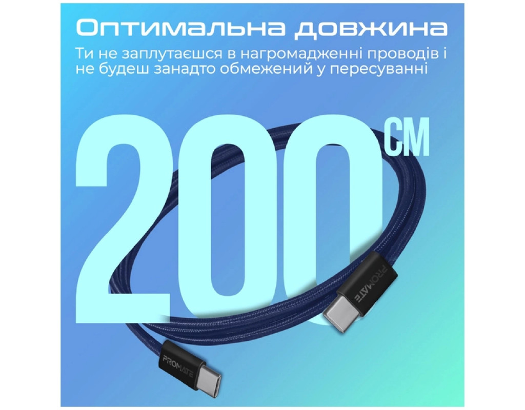 Дата кабель USB-C to USB-C 2.0m Promate (ecoline-cc200.navy)