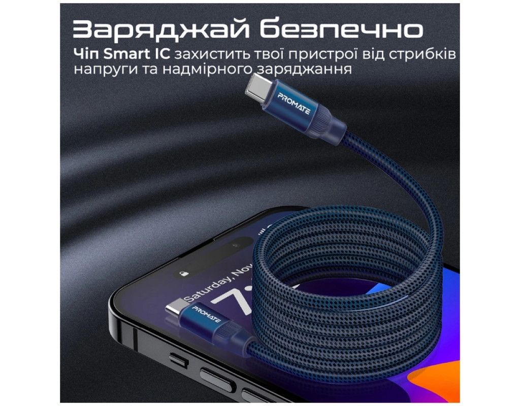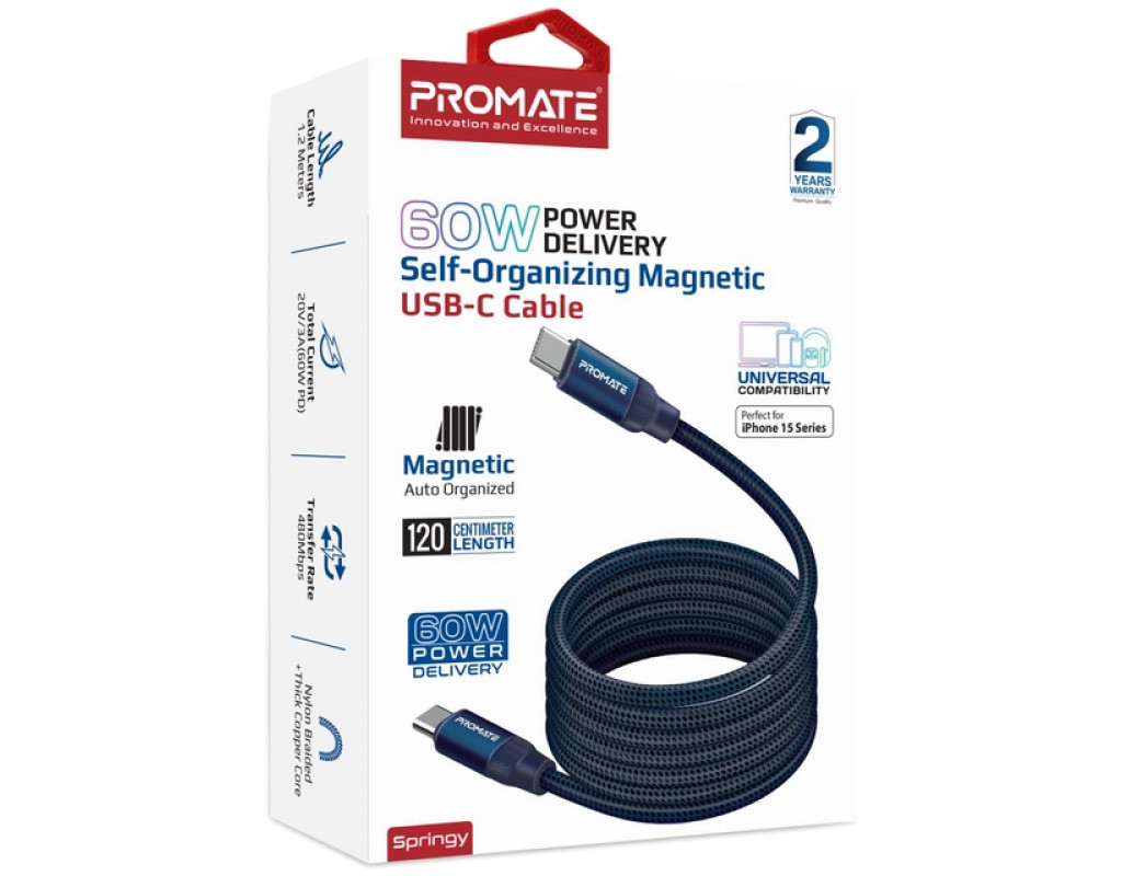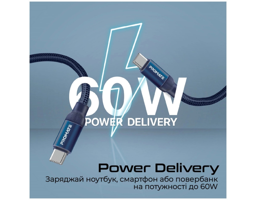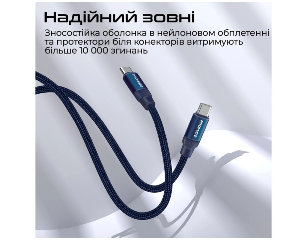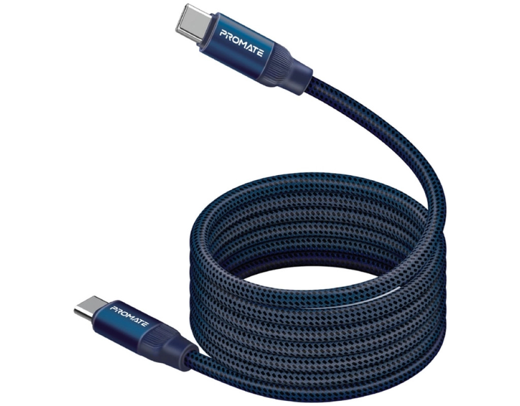 Дата кабель USB-C to USB-C 1.2m Promate (springy.blue)