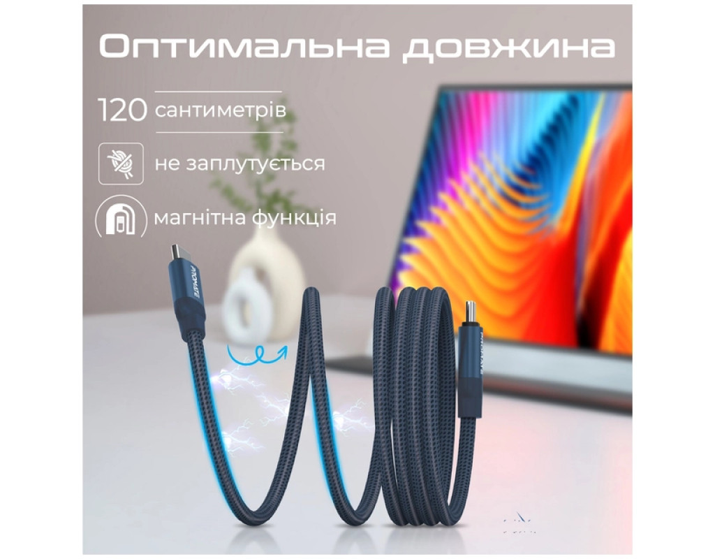 Тип - кабель, Тип коннектора 1 - USB Type-C, Тип коннектора 2 - USB Type-C, длина - 1.2 м, Номинальный ток - 3 А, 60 W, Цвет - синий