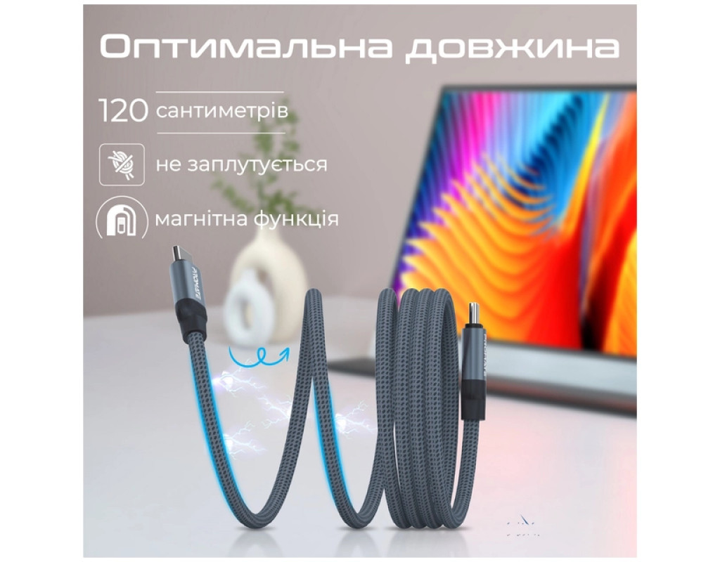 Тип - кабель, Тип коннектора 1 - USB Type-C, Тип коннектора 2 - USB Type-C, длина - 1.2 м, Номинальный ток - 3 А, 60 W, Цвет - серый