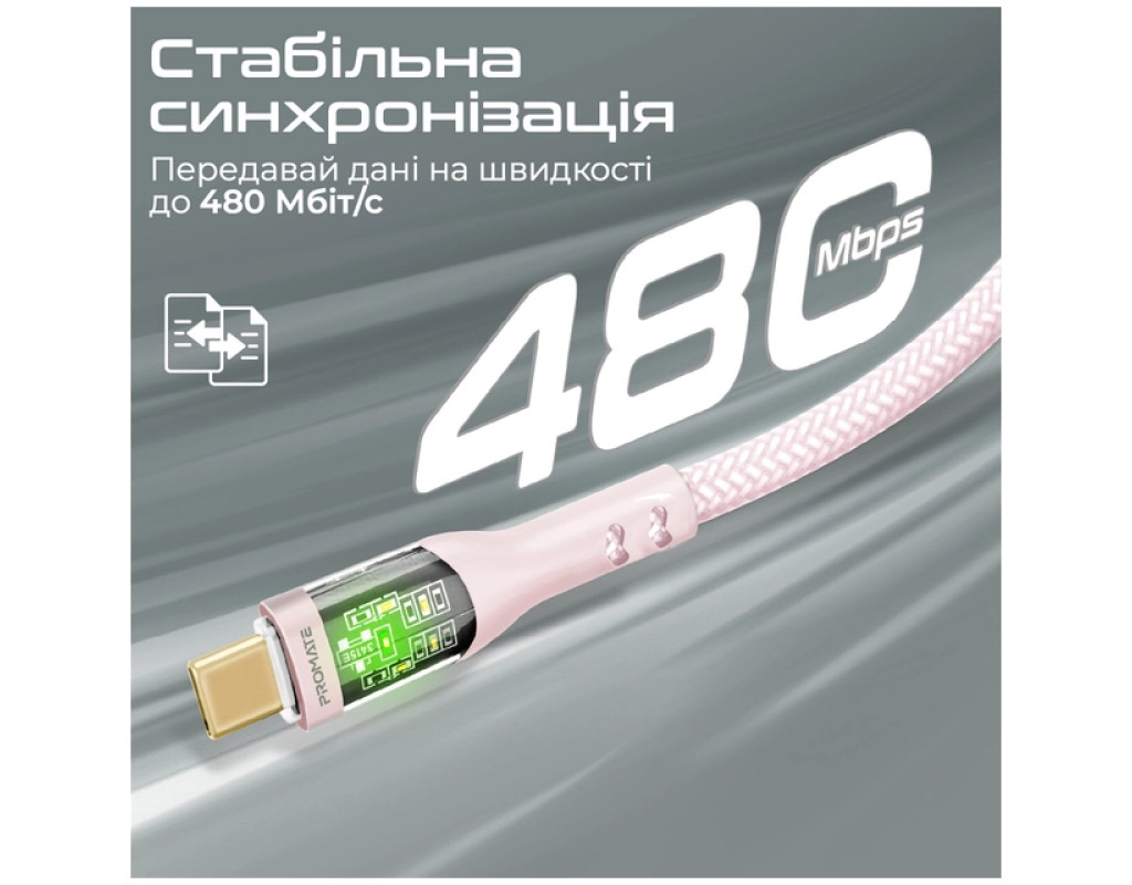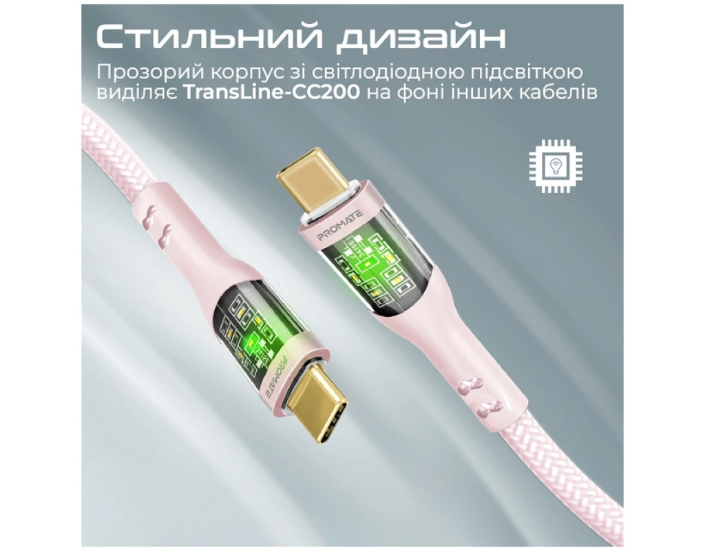Дата кабель USB-C to USB-C 2.0m Promate (transline-cc200.pink)