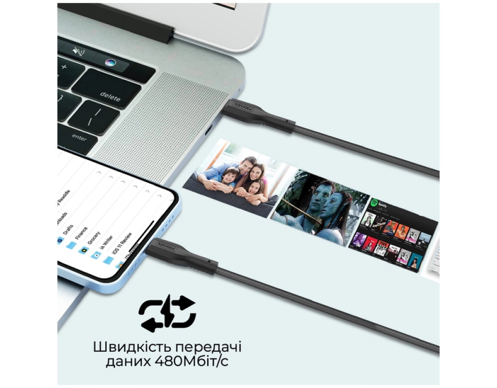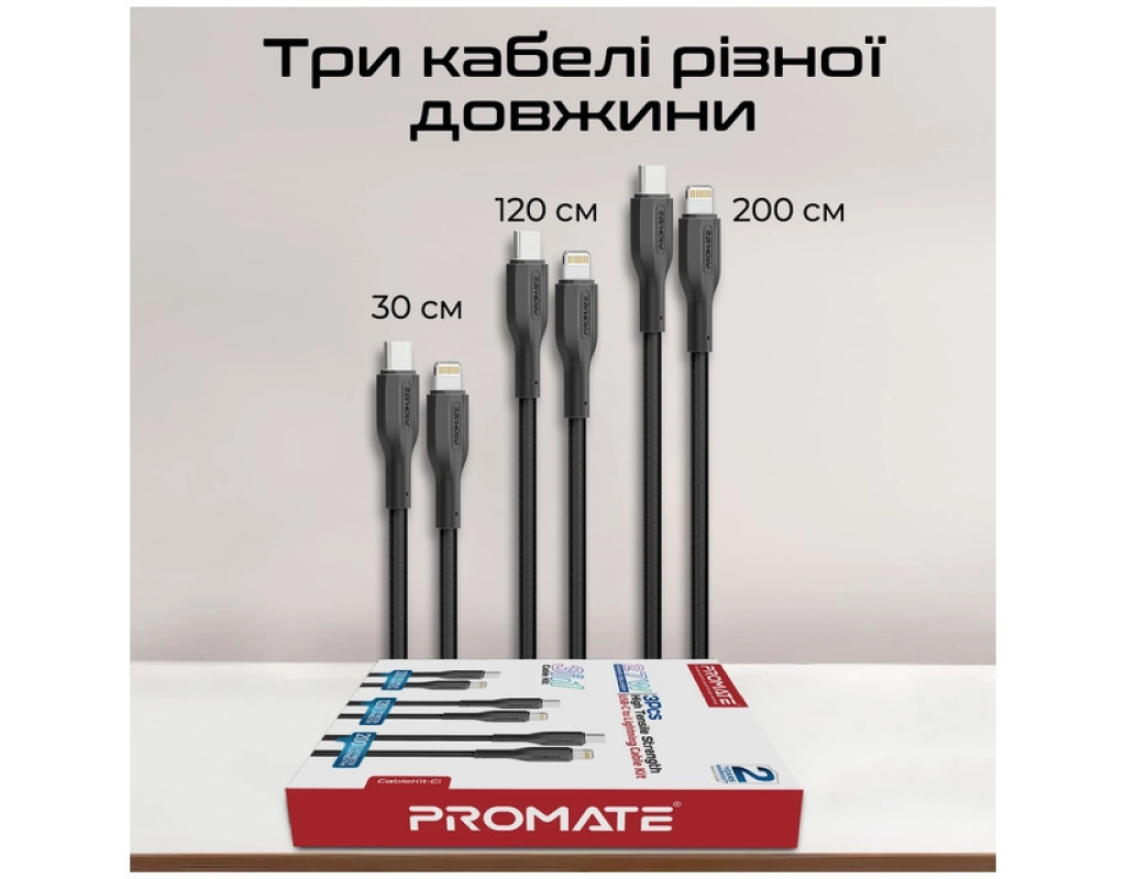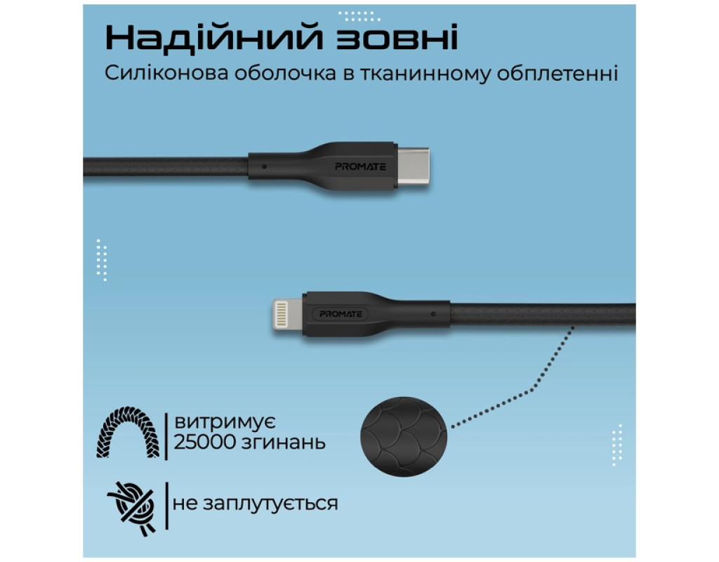 Дата кабель USB-C to Lightning 2.0m Promate (cablekit-ci)