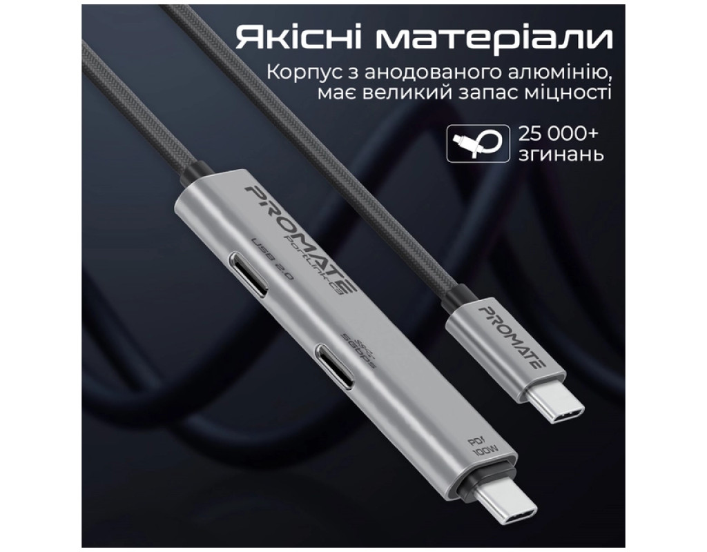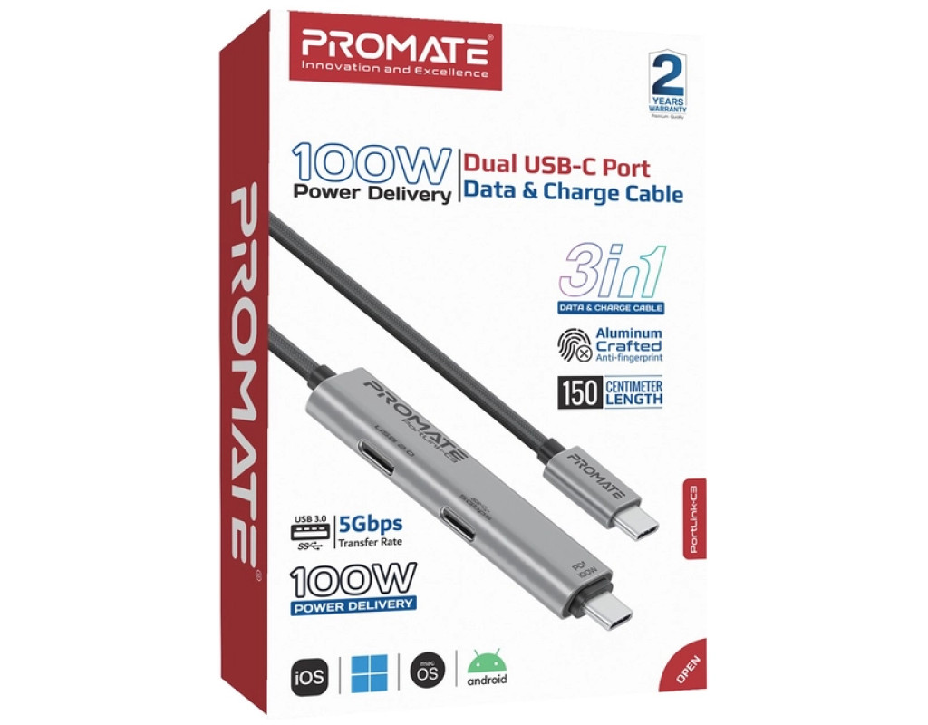 Дата кабель USB-C to USB-C 1.5m Promate (portlink-c3.black)