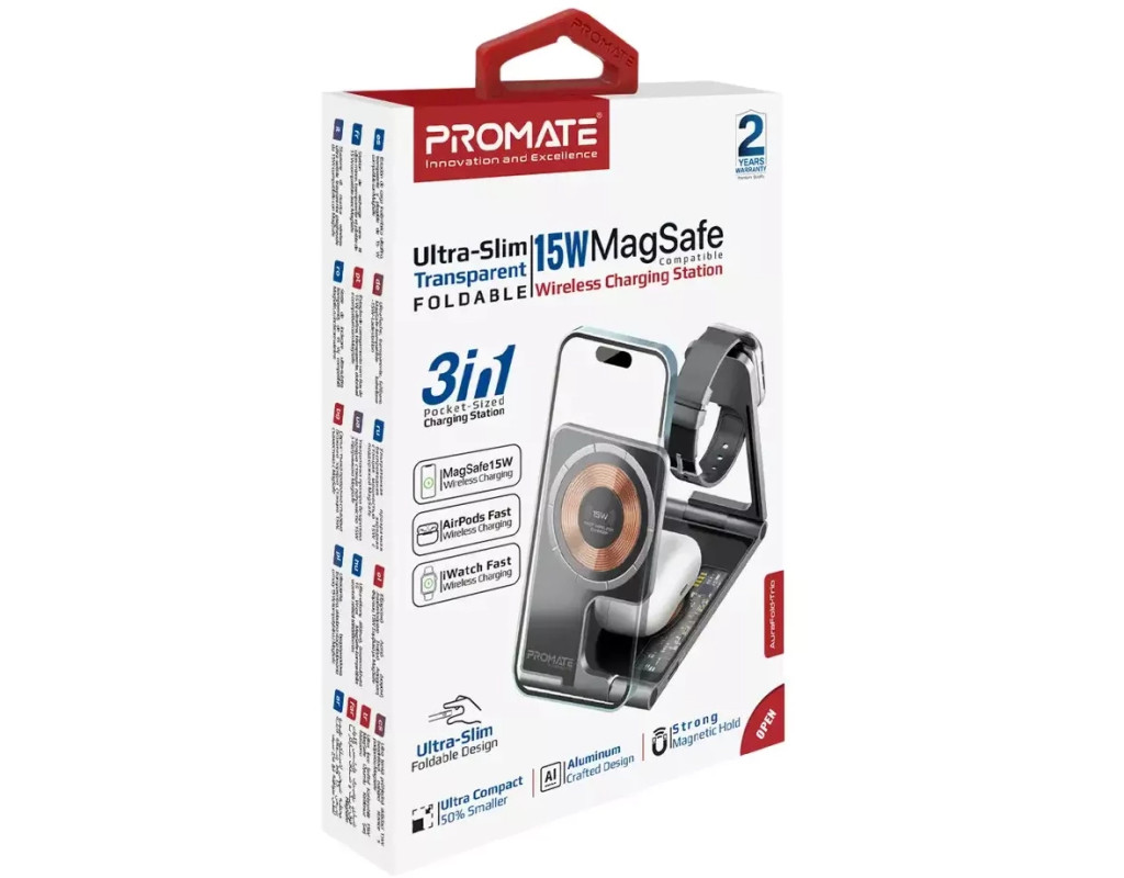 iPhone, iWatch и AirPods. Promate AuraFold-Trio - стильная и функциональная док-станция, которая с легкостью зарядит твои девайсы от Apple. Особенности: