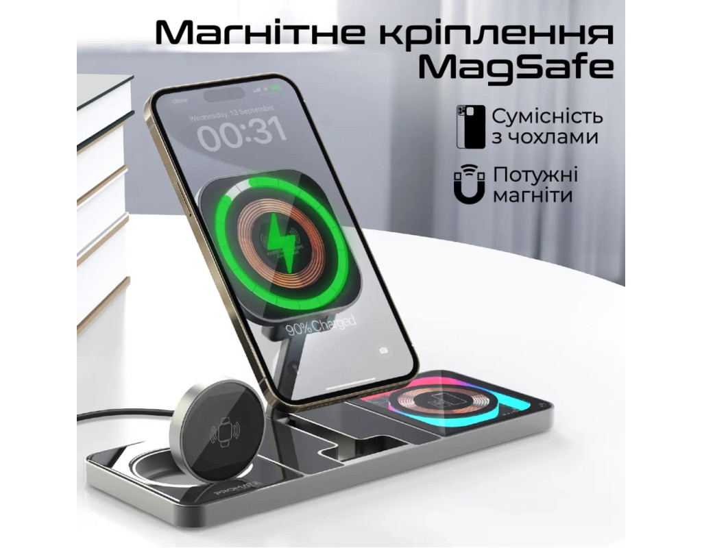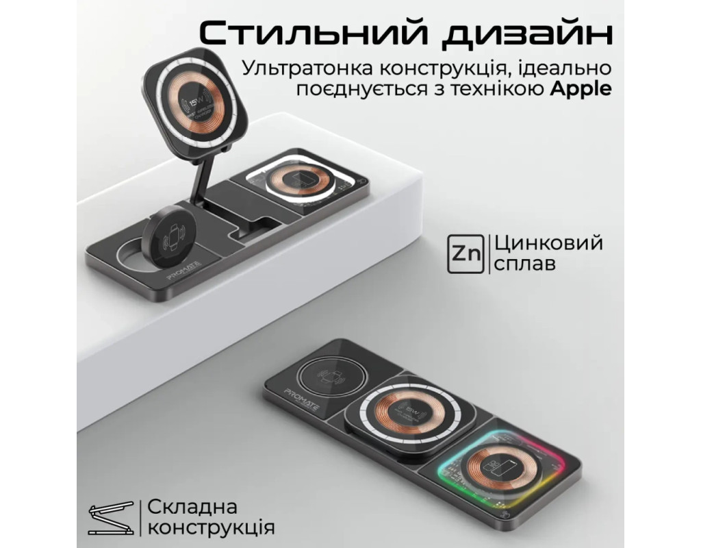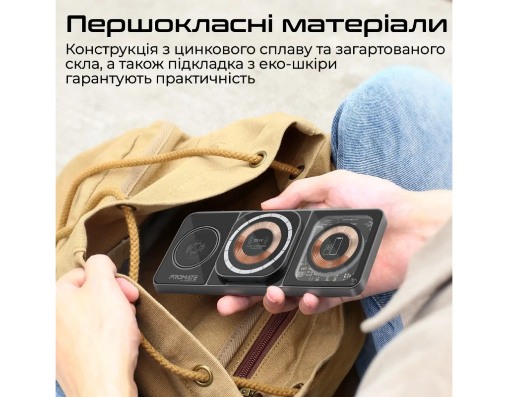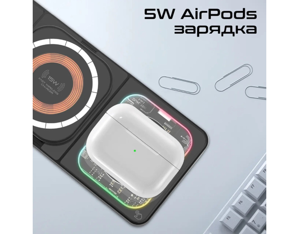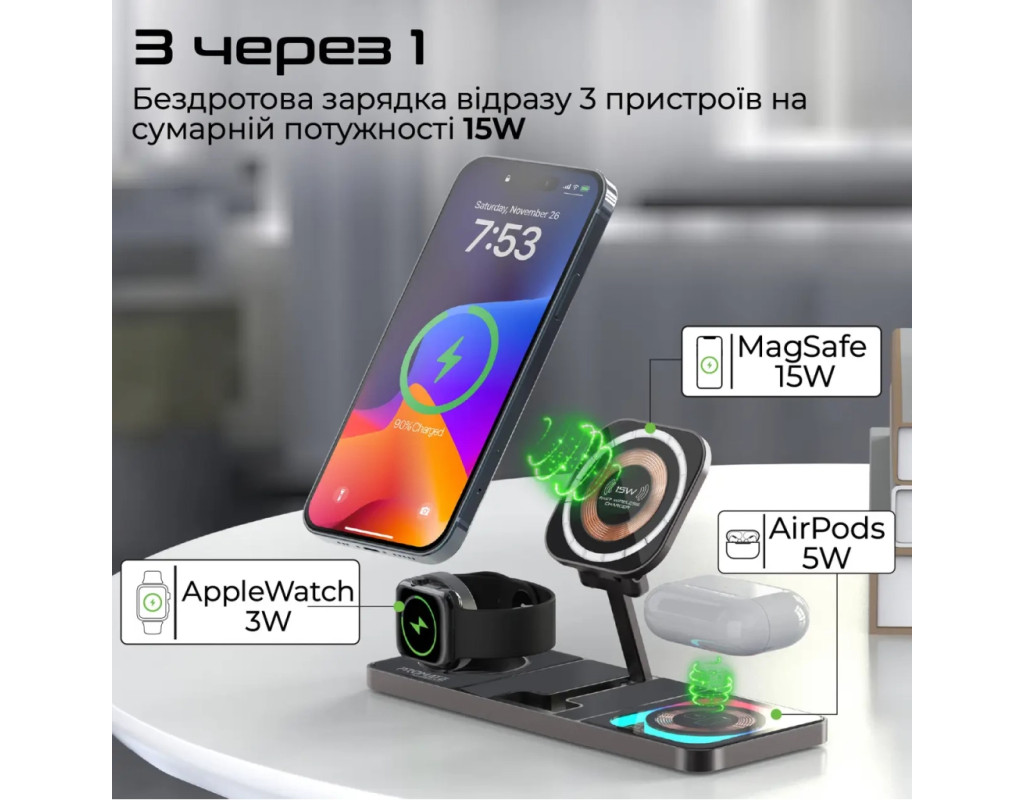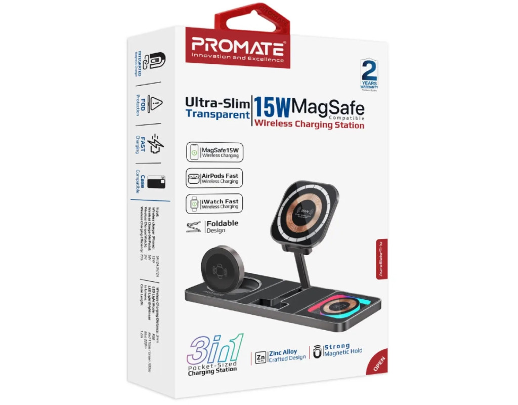 | Зарядное устройство Promate AuraSlate-Trio — это идеальное сочетание эстетики и инновационных технологий для тех, кто ценит стиль и функциональность. Это беспроводное зарядное устройство изготовлено из первоклассных материалов — цинкового сплава и закаленного стекла, что гарантирует не только прекрасный вид, но и высокое качество и долговечность. Предлагая зарядку для трех устройств одновременно, AuraSlate-Trio обеспечивает мощность до 15 Вт. Благодаря технологии магнитного крепления MagSafe, зарядное устройство идеально подходит для моделей iPhone 12 и выше, обеспечивая надежную фиксацию и максимально эффективную зарядку. Не стоит забывать о мощности выходного тока в 3 А, что гарантирует быстрое пополнение энергии ваших устройств. Встроенный Smart IC чип отвечает за безопасность, защищая гаджеты от скачков напряжения, короткого замыкания и чрезмерной зарядки. Система FOD мгновенно реагирует на посторонние предметы на поверхности, предотвращая перегрев и защищая вашу технику. Для поклонников Apple эта модель имеет особые преимущества: зарядка AirPods на мощности 5 Вт и Apple Watch на 3 Вт. Важной особенностью является наличие LED-подсветки с четырьмя режимами, которые добавляют очарование вашему рабочему пространству. Зарядное устройство оснащено портом USB Type C, что расширяет возможности зарядки. Прозрачный корпус демонстрирует детали конструкции, придавая устройству уникальность. AuraSlate-Trio — это инновационный выбор для тех, кто стремится воплотить мир технологий в своем офисе или доме. |