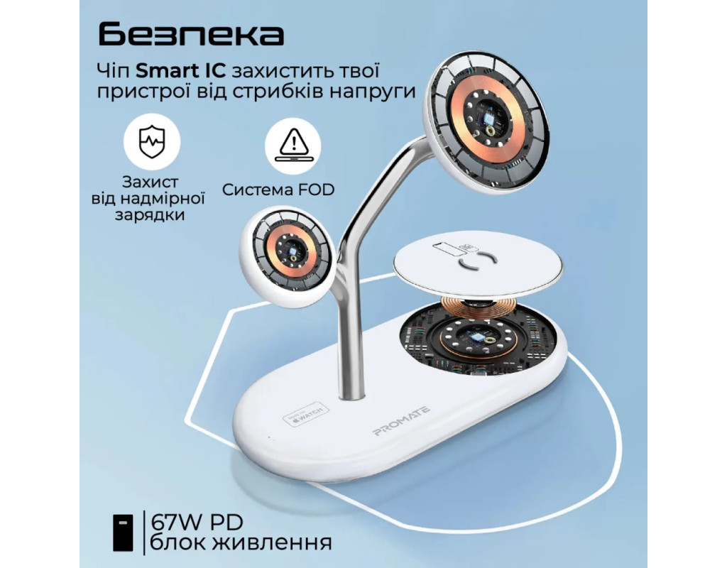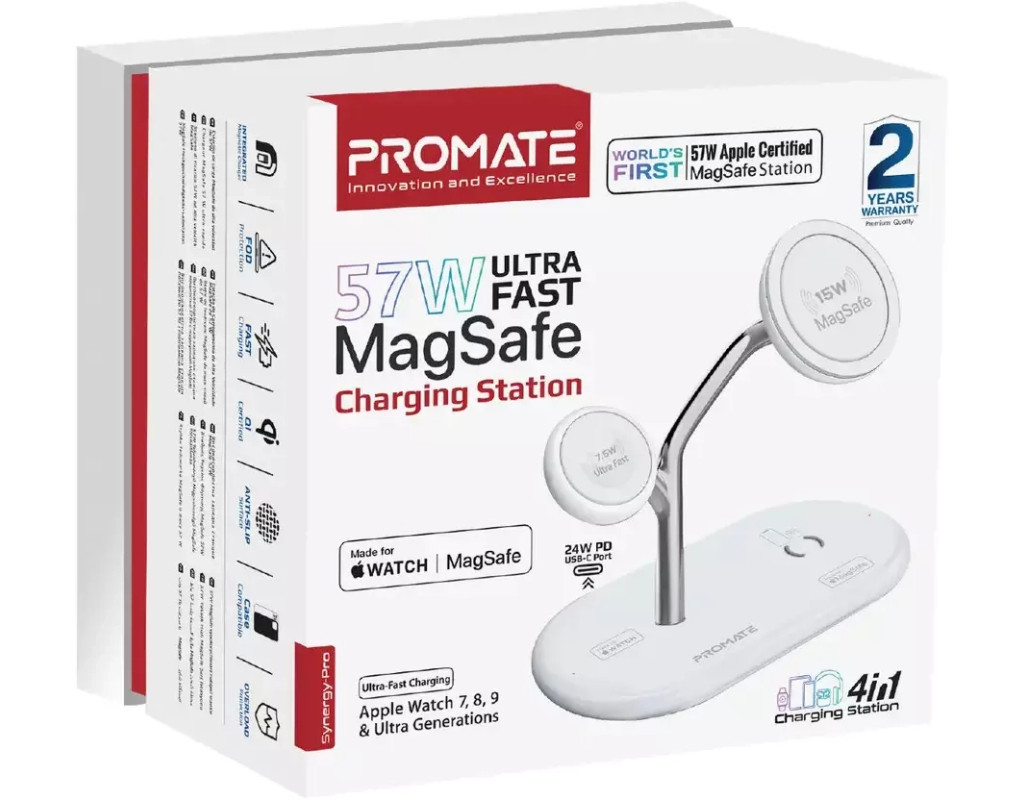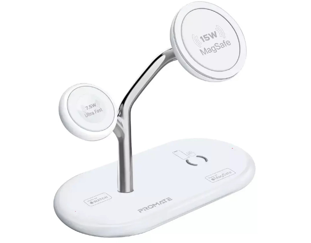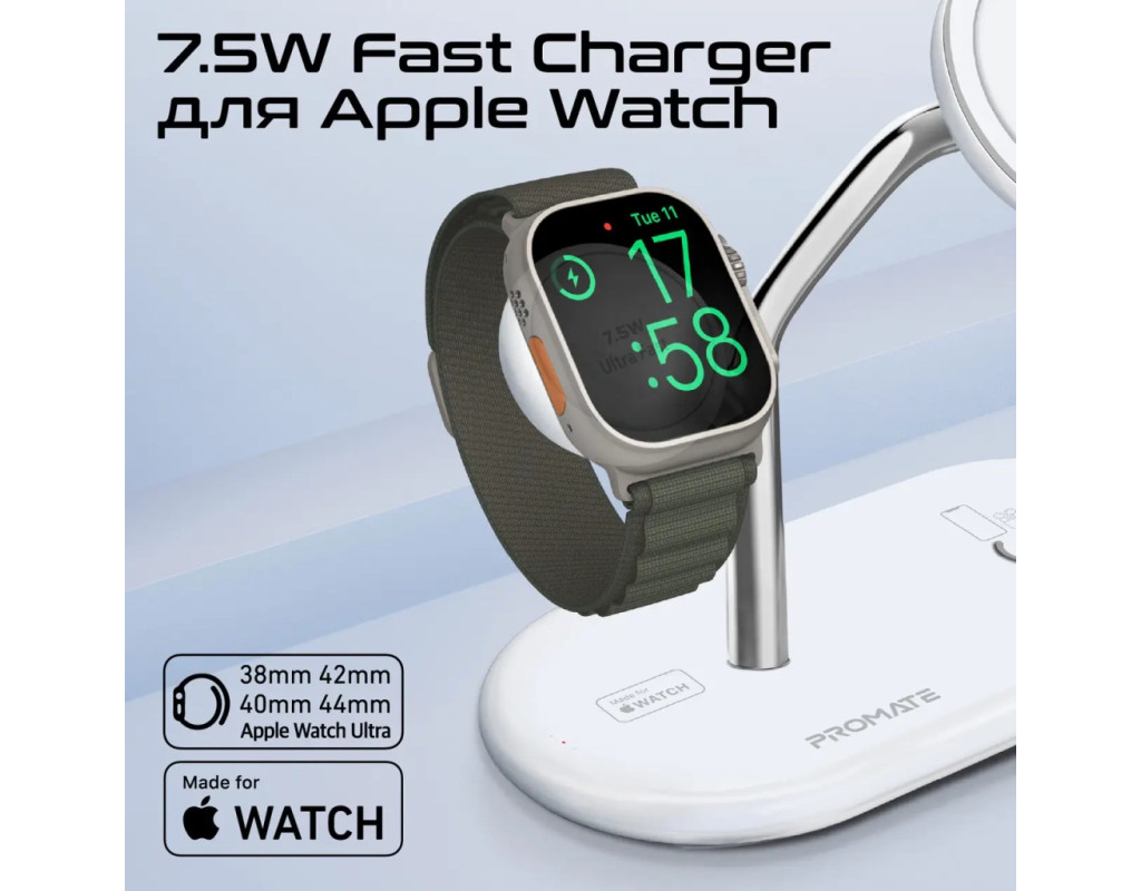 | Зарядное устройство Promate wireless (synergy-pro.white) - это революционное решение для тех, кто ценит качество и удобство. Это инновационное беспроводное зарядное устройство разработано специально для пользователей техники Apple, предлагая уникальную возможность заряжать Apple Watch, iPhone и AirPods одновременно с максимальным комфортом. Благодаря продуманной 4-в-1 функциональности, вы получите решение для всех ваших зарядных нужд: от беспроводных зарядок MagSafe мощностью 15 Вт до Qi зарядки на 10 Вт. Этот гаджет также оснащен USB-C Power Delivery портом, который обеспечивает мощность до 24 Вт. Зарядка для Apple Watch поддерживает быструю зарядку с мощностью 7.5 Вт, а общая мощность в 56.5 Вт гарантирует быстрое и надежное заряджение. Качество и уникальные функции Promate Synergy-Pro подчеркиваются наличием сертификации MFi и встроенным MFi чипом, который гарантировано поддерживает все последние обновления от Apple. Более того, магнитное крепление MagSafe обеспечивает оптимальное выравнивание для вашего iPhone 12 и выше, что позволяет максимально эффективно использовать зарядный потенциал. Благодаря встроенной системе FOD, устройство автоматически отключается при обнаружении посторонних объектов, обеспечивая безопасность во время зарядки. Чип Smart IC защищает от перепадов напряжения, коротких замыканий и перегрузок, обеспечивая долговечную и безопасную работу. Promate Synergy-Pro изготовлен из анодированного алюминия и огнеупорного ABS-пластика, что добавляет не только надежности, но и стильного вида, который органично вписывается в любой современный интерьер. Это устройство станет вашим незаменимым помощником, сочетая высокое качество и совершенство в каждой детали. |