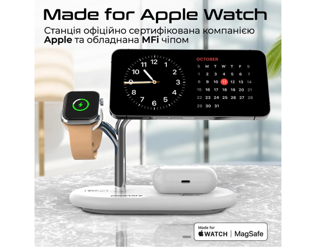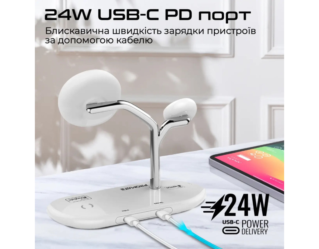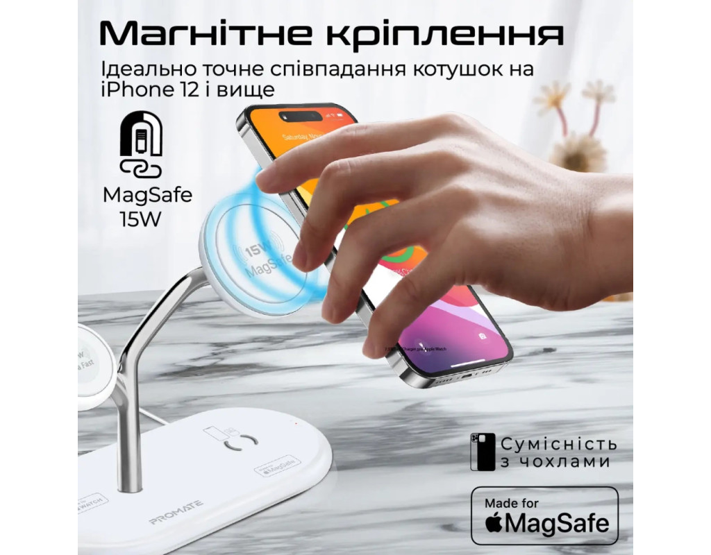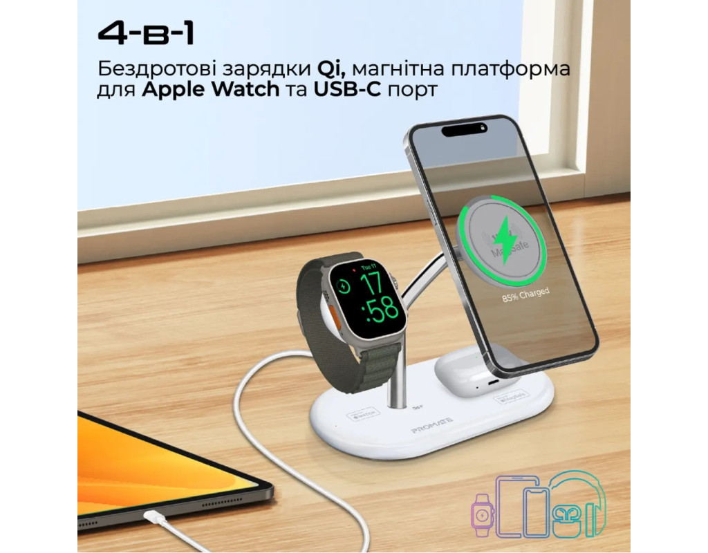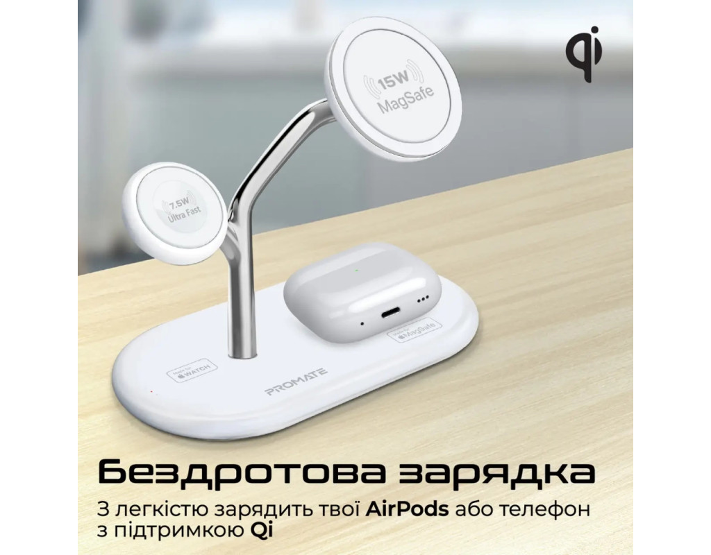 | Зарядное устройство Promate wireless (synergy-pro.white) - это революционное решение для тех, кто ценит качество и удобство. Это инновационное беспроводное зарядное устройство разработано специально для пользователей техники Apple, предлагая уникальную возможность заряжать Apple Watch, iPhone и AirPods одновременно с максимальным комфортом. Благодаря продуманной 4-в-1 функциональности, вы получите решение для всех ваших зарядных нужд: от беспроводных зарядок MagSafe мощностью 15 Вт до Qi зарядки на 10 Вт. Этот гаджет также оснащен USB-C Power Delivery портом, который обеспечивает мощность до 24 Вт. Зарядка для Apple Watch поддерживает быструю зарядку с мощностью 7.5 Вт, а общая мощность в 56.5 Вт гарантирует быстрое и надежное заряджение. Качество и уникальные функции Promate Synergy-Pro подчеркиваются наличием сертификации MFi и встроенным MFi чипом, который гарантировано поддерживает все последние обновления от Apple. Более того, магнитное крепление MagSafe обеспечивает оптимальное выравнивание для вашего iPhone 12 и выше, что позволяет максимально эффективно использовать зарядный потенциал. Благодаря встроенной системе FOD, устройство автоматически отключается при обнаружении посторонних объектов, обеспечивая безопасность во время зарядки. Чип Smart IC защищает от перепадов напряжения, коротких замыканий и перегрузок, обеспечивая долговечную и безопасную работу. Promate Synergy-Pro изготовлен из анодированного алюминия и огнеупорного ABS-пластика, что добавляет не только надежности, но и стильного вида, который органично вписывается в любой современный интерьер. Это устройство станет вашим незаменимым помощником, сочетая высокое качество и совершенство в каждой детали. |