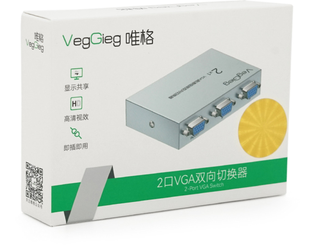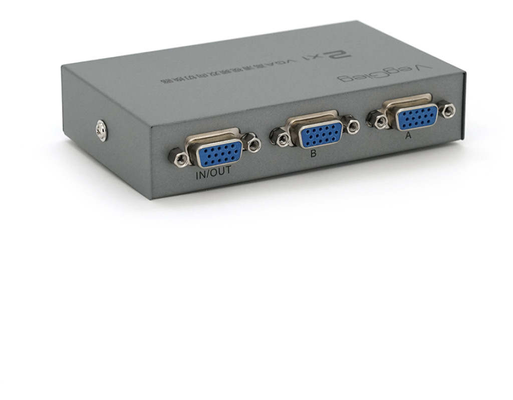 VGA спліттер Veggieg V-F201 - перемикач моніторів на 2 входи, Silver