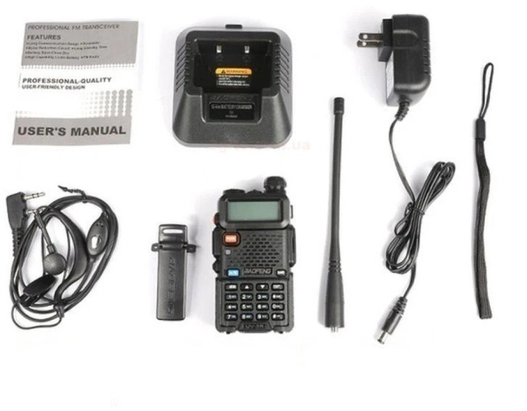 Комплектация Рация Зарядное устройство Гарнитура Baofeng c кнопкой РТТ Сетевой адаптер для зарядного устройства Антенна Аккумулятор Клипса для крепления на ремень Шнурок на руку