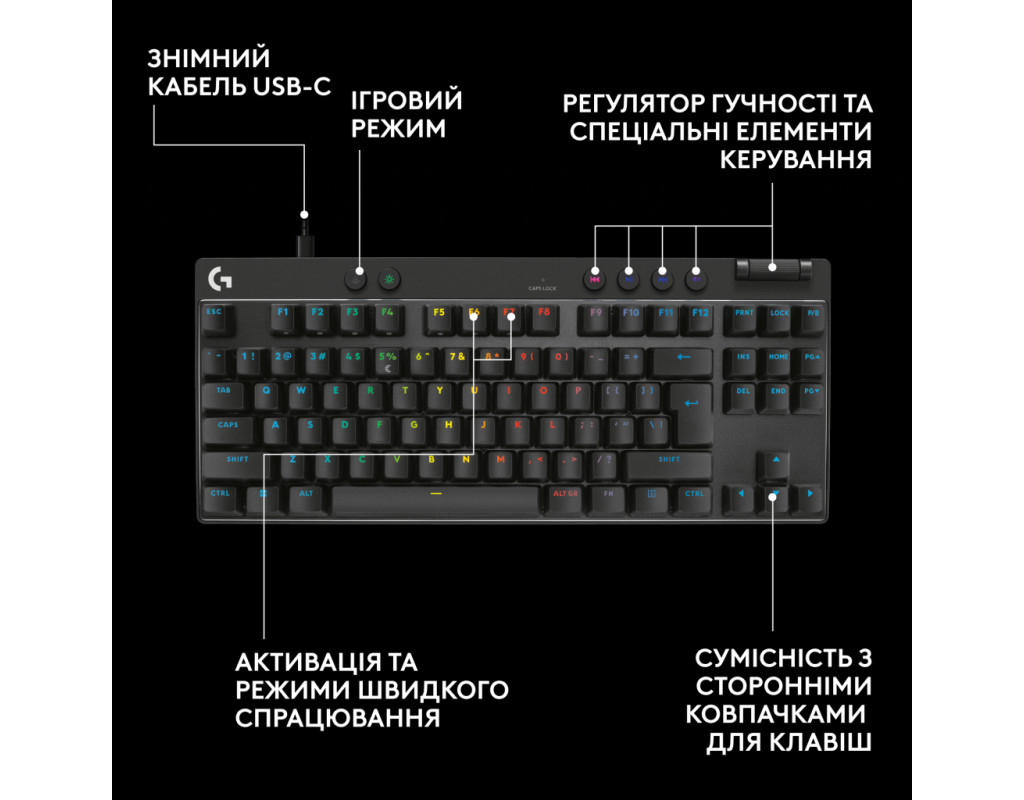 | Клавиатура Logitech G PRO X TKL Rapid Linear USB UA Black - это бескомпромиссный выбор для каждого геймера. Созданная с учетом потребностей профессионалов киберспорта, она сочетает в себе инновационные технологии и высокое качество инженерной реализации Logitech G. Ее механическая конструкция с магнито-аналоговыми линейными переключателями обеспечивает невероятную точность и скорость реакции, необходимую для решающих моментов в игре. Благодаря чувствительности срабатывания с усилием в 35 г, клавиатура гарантирует плавную и надежную игру без задержек. RGB подсветка LIGHTSYNC не только украшает ваше рабочее место, но и синхронизируется с игровыми событиями, музыкой и видео, даря вам удовольствие от каждой игровой сессии. Легкое USB подключение обеспечивает стабильность и удобство использования, а компактный TKL формат освобождает пространство для маневров мышкой. Клавиатура имеет сменные клавиши и поддерживает английскую и украинскую раскладки, что добавляет универсальности в использовании. Благодаря программе KEYCONTROL, вы настроите многофункциональные комбинации клавиш, оптимизируя процесс управления игрой. Функция многоточечного действия позволяет установить два разных эффекта на одну клавишу, добавляя гибкости в ваше настройку. С поддержкой ОС Windows, эта клавиатура позволяет легко сохранять собственные настройки благодаря встроенной памяти. Почувствуйте уверенность на турнирах, имея рядом именно те параметры, которые вы выбрали для победы. И, чтобы максимизировать фокус на игре, активируйте режим игры, ограничив ненужные клавиши для успеха на каждом этапе соревнования. |