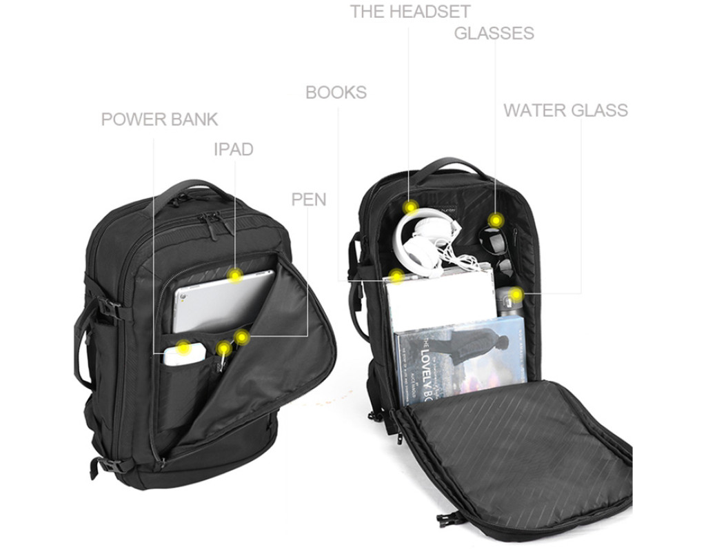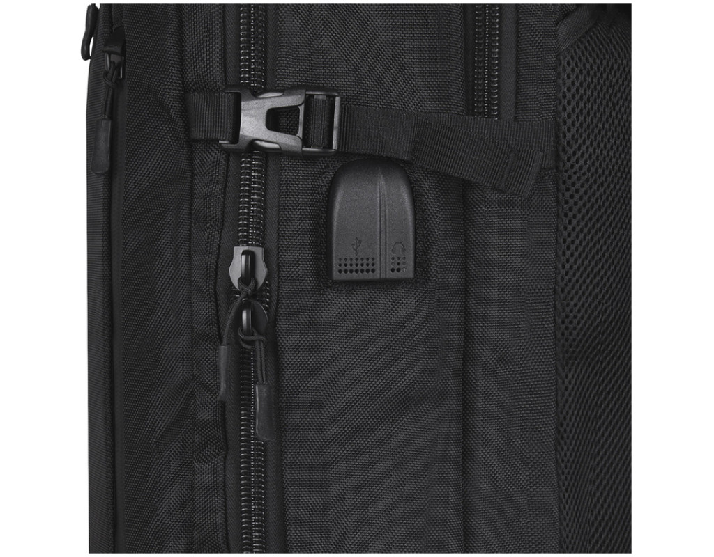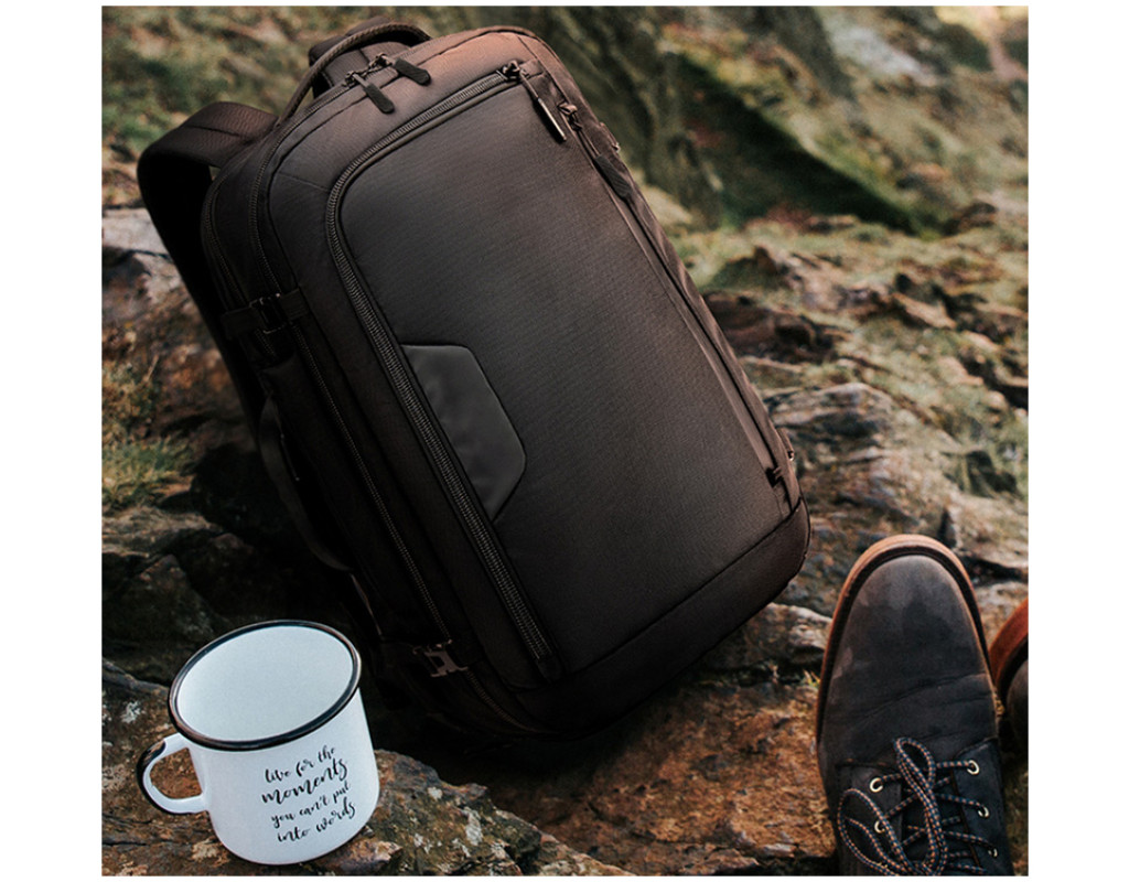 Сумка-рюкзак (трансформер) бизнес класса PORTO RNB-4027BK с отсеком для ноутбука до 15.6”. Полезный объем рюкзака разбит на 3 независимых отделения. Одно отделение имеет дополнительную боковую защиту и предназначено для размещения ноутбука с диагональю до 15.6”. Центральное отделение с размером 45х31х11 см подходит для размещения объемных вещей, а также имеет 2 сетчатых кармана для аксессуаров. Переднее отделение имеет внутренний органайзер с карманами разного размера для размещения телефона, блока питания, кабелей, карандашей и т.д. аксессуаров. Дополнительно для быстрого доступа на лицевой стороне рюкзака есть отдельный карман для бумаг, а на боковой стороне - дополнительный сетчатый карман для мелких аксессуаров. Особенностью конструкции RNB-4027BK есть возможность трансформации из сумки в полноценный рюкзак и наоборот. В формате рюкзака используются эргономичные наплечные лямки. При использовании в качестве сумок помогут 2 отдельные ручки для переноски в руке в вертикальном или горизонтальном положении. Наплечные лямки при этом могут быть сложены в отдельный отсек под спинкой рюкзака. Спинка и лямки рюкзака мягкие из сетчатого вентилируемого материала. Длина лямок регулируется. С помощью фастексных застежек можно стягивать сумку, дополнительно уменьшая ее объем. Также в конструкции спинки предусмотрена дополнительная ременная лента для фиксации сумки на дорожном чемодане. Еще одной «фишкой» этой сумки есть наличие встроенной проводки, состоящей из внешних портов аудио- и USB и соответствующих внутренних кабелей. Это позволяет быстро подключать для зарядки или коммуникации внутренние устройства, например повербанк, через внешний разъем USB, а также внешнюю акустику или наушники через аудиоразъем 3.5 мм. Конструкция внешнего порта обеспечивает плотную фиксацию на сумке и защиту от попадания влаги. Материал рюкзака – практичный в повседневной эксплуатации нейлон 1200DN повышенной плотности. Материал немаркий, легко отмывается от загрязнений. |