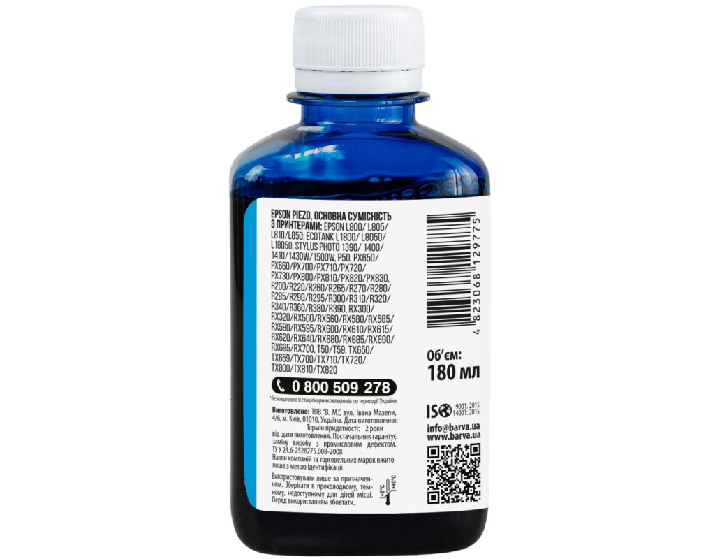 | Сублімаційні чорнила – спеціальний тип чорнил, що використовується для перенесення зображень на текстиль, метал, кераміку, пластик і т.д. Чорнило сумісне для настільних принтерів Epson 180 мл, сублімаційне, блакитне Barva (SUB-919) використовується для заправки настільних принтерів Epson. Чорнила SUB-919 Barva мають офіційну гарантію – АТ000953. При виборі чорнила Вам також необхідно звернути увагу на колір картриджа, який плануєте заправляти. Ці чорнила Barva мають колір – cyan (блакитний). Виробник гарантує безперебійну роботу чорнил протягом всього терміну використання, який складає – 2 роки. Тип чорнил SUB-919 Barva – Сублімаційні. Українська компанія ТОВ «В.М.» виготовляє чорнила під торговою маркою Barva вже багато років. На базі власної лабораторії відбувається як розробка нових формул, так і неперервний контроль якості продукції, що випускається. При виробництві чорнил виробник слідує стандартам ISO 9001:2015 та ISO 14001:2015. Для досягнення найкращого результату в передачі кольору та стійкості до світла ми рекомендуємо використовувати комбінацію – Спеціальний папір для сублімаційного друку Barva + чорнила Barva. Дана фарба для принтера Epson Barva має фасовку – 180 мл: Фасовка чорнил Barva 180 гр./180 мл буде зручною для користувачів, якім необхідно багато друкувати – в даному випадку вартість чорнил буде нижчою, ніж в більш маленьких фасовках (90 гр. або 100 мл). З даним флаконом можлива заправка картриджа, а також резервуара принтера. Чорнила SUB-919 Barva, рекомендації щодо використання: Підготуйте майбутній малюнок для переносу у дзеркальному зображенні. Надрукуйте тестовий аркуш для перевірки, чи все правильно зроблено. Перенесіть підготовлене зображення на необхідну поверхню за допомогою термопресу. Якщо плануєте переносити зображення на текстиль, обирайте тканину із вмістом синтетики не менше 50%. Ви можете купити Чорнило сумісне для настільних принтерів Epson 180 мл, сублімаційне, блакитне Barva (SUB-919) в нашому інтернет-магазині з доставкою по Києву та всій Україні. |