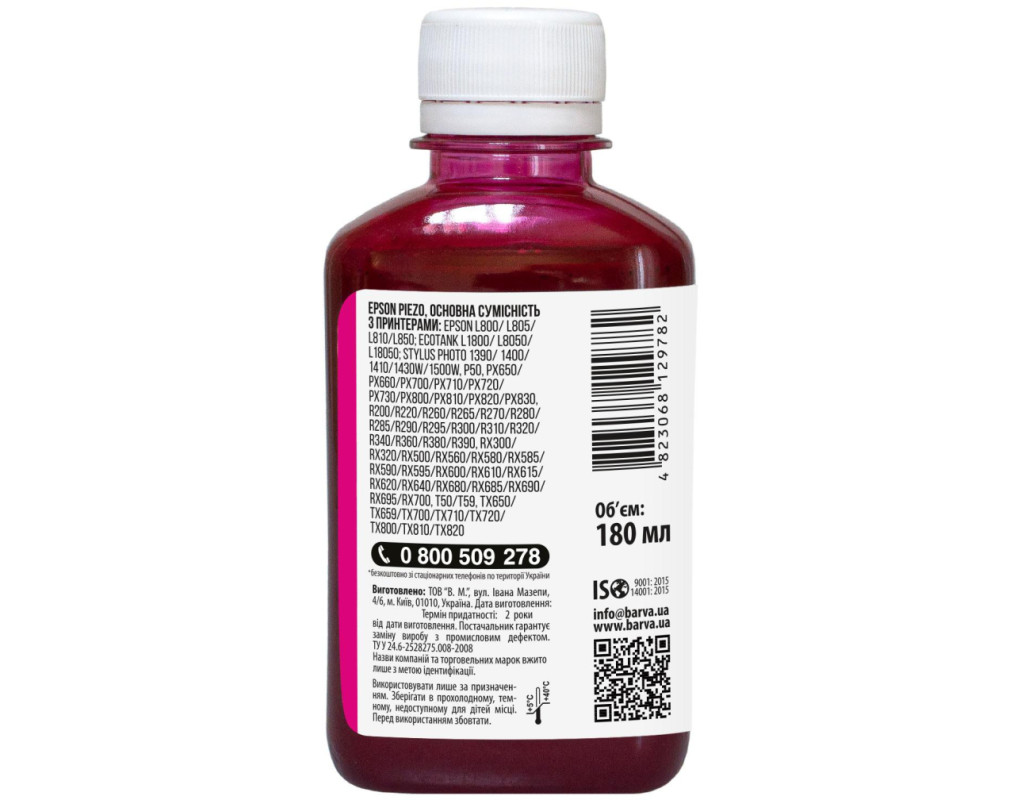 | Сублімаційні чорнила – спеціальний тип чорнил, що використовується для перенесення зображень на текстиль, метал, кераміку, пластик і т.д. Чорнило сумісне для настільних принтерів Epson 180 мл, сублімаційне, пурпурове Barva (SUB-920) використовується для заправки настільних принтерів Epson. Чорнила SUB-920 Barva мають офіційну гарантію – АТ000953. При виборі чорнила Вам також необхідно звернути увагу на колір картриджа, який плануєте заправляти. Ці чорнила Barva мають колір – magenta (пурпурний). Виробник гарантує безперебійну роботу чорнил протягом всього терміну використання, який складає – 2 роки. Тип чорнил SUB-920 Barva – Сублімаційні. Українська компанія ТОВ «В.М.» виготовляє чорнила під торговою маркою Barva вже багато років. На базі власної лабораторії відбувається як розробка нових формул, так і неперервний контроль якості продукції, що випускається. При виробництві чорнил виробник слідує стандартам ISO 9001:2015 та ISO 14001:2015. Для досягнення найкращого результату в передачі кольору та стійкості до світла ми рекомендуємо використовувати комбінацію – Спеціальний папір для сублімаційного друку Barva + чорнила Barva. Дана фарба для принтера Epson Barva має фасовку – 180 мл: Фасовка чорнил Barva 180 гр./180 мл буде зручною для користувачів, якім необхідно багато друкувати – в даному випадку вартість чорнил буде нижчою, ніж в більш маленьких фасовках (90 гр. або 100 мл). З даним флаконом можлива заправка картриджа, а також резервуара принтера. Чорнила SUB-920 Barva, рекомендації щодо використання: Підготуйте майбутній малюнок для переносу у дзеркальному зображенні. Надрукуйте тестовий аркуш для перевірки, чи все правильно зроблено. Перенесіть підготовлене зображення на необхідну поверхню за допомогою термопресу. Якщо плануєте переносити зображення на текстиль, обирайте тканину із вмістом синтетики не менше 50%. Ви можете купити Чорнило сумісне для настільних принтерів Epson 180 мл, сублімаційне, пурпурове Barva (SUB-920) в нашому інтернет-магазині з доставкою по Києву та всій Україні. |