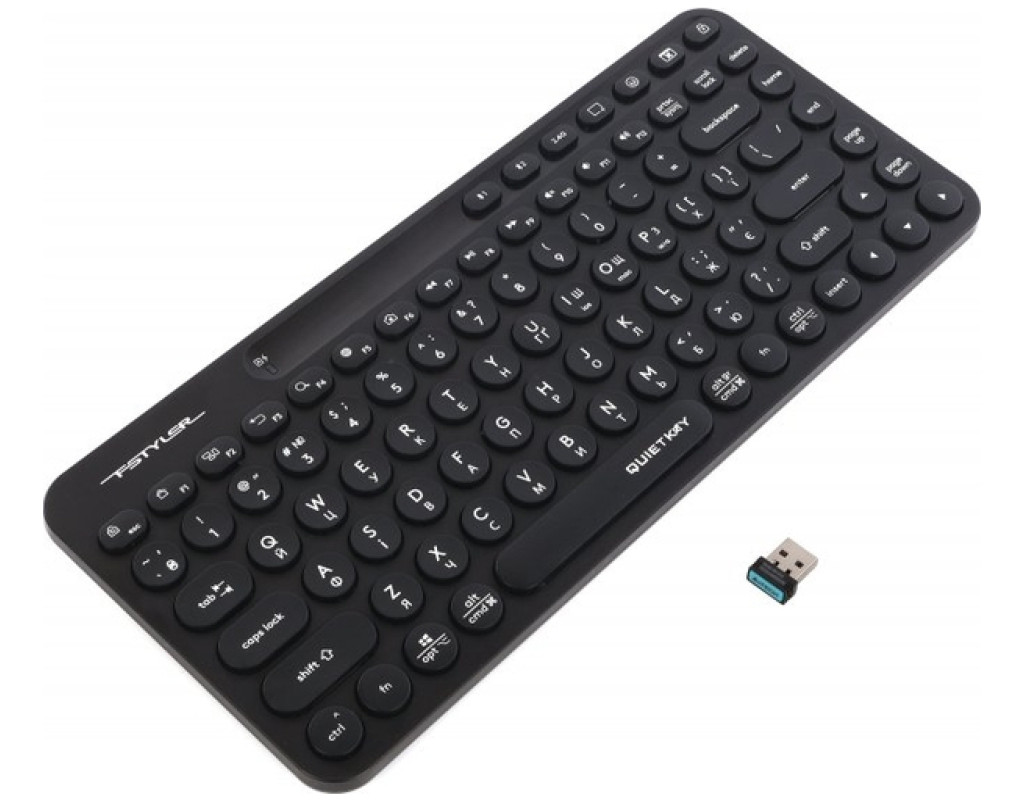| Клавиатура A4Tech FBK36C Wireless/Bluetooth Black (4711421000222) - это воплощение современных технологий для тех, кто ценит качество, универсальность и комфорт одновременно. Благодаря мембранной конструкции и запатентованной технологии QuietKey, A4Tech FBK36C обеспечивает чрезвычайно тихую работу, снижая уровень шума с 35 дБ до всего 14 дБ. Это позволяет сосредоточиться на работе без лишнего отвлечения, даже в самых тихих условиях. Эта мультимедийная клавиатура отличается двойным режимом подключения: через Bluetooth или 2.4 ГГц USB-адаптер, что обеспечивает стабильную и быструю передачу данных. Легко переключайтесь между устройствами, благодаря функции одновременного подключения к трем гаджетам. Это будет полезно в современном мире, где многофункциональность является ключом к успеху. Компактный формат и раскладка на английском и украинском языках делают её идеальным выбором для работы с планшетами, смартфонами и даже телевизорами. Её широкая совместимость с операционными системами Android, Windows, Chrome OS и Mac OS позволяет легко интегрировать клавиатуру в ваш рабочий процесс, независимо от платформы. Удобство в использовании дополняют 12 горячих клавиш FN для быстрого доступа к мультимедийным функциям, таким как управление музыкой или изменение громкости. Кроме того, специальный режим антисна предотвращает переход устройства в спящий режим, что особенно полезно во время важных презентаций или загрузки больших файлов. A4Tech FBK36C – это отличный выбор, который делает каждое нажатие не только приятным, но и эффективным, гармонично сочетая в себе возможности для работы, учёбы и отдыха. |