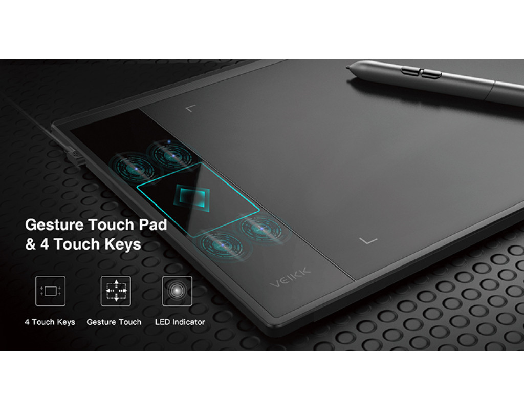 | Умная сенсорная панель и 4 настраиваемых сенсорных клавиши. Сенсорная панель упрощает процесс увеличения и уменьшения масштаба, а также отмены/возврата и т.д. Четыре горячие клавиши обеспечивают идеальное сенсорное восприятие. Функции клавиш можно настроить под ваши требования.