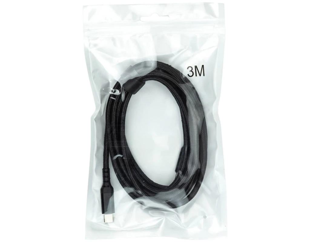 Высокогибкий кабель USB Type-C – USB Type-C для быстрой зарядки и передачи данных, черный, длиной 3 м. Особенности: - Поддерживает быструю зарядку PD60W.