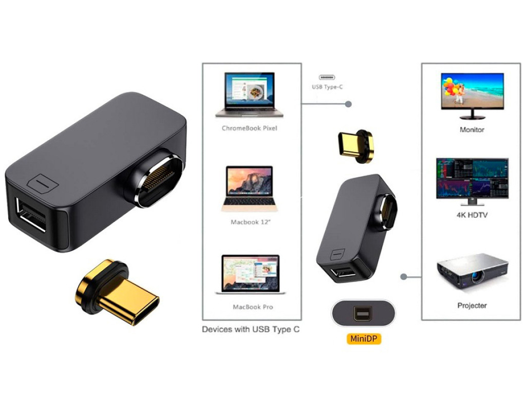 Адаптер USB Type-C to mini DP (DisplayPort) позволяет подключать устройства с интерфейсом USB Type-C к порту DP. Разъем DisplayPort - это стандарт цифрового интерфейса дисплея для подключения аудио- и видеооборудования. Поддерживается разрешение Ultra HD 8K (7680 x 4320 пикселей). Адаптер можно использовать для подключения компьютера к дисплею или системе домашнего кинотеатра. Магнитный адаптер защищает контакты устройств от износа и механических повреждений. Сильная магнитная сила обеспечивает быстрое, удобное и безопасное подключение/отключение. |